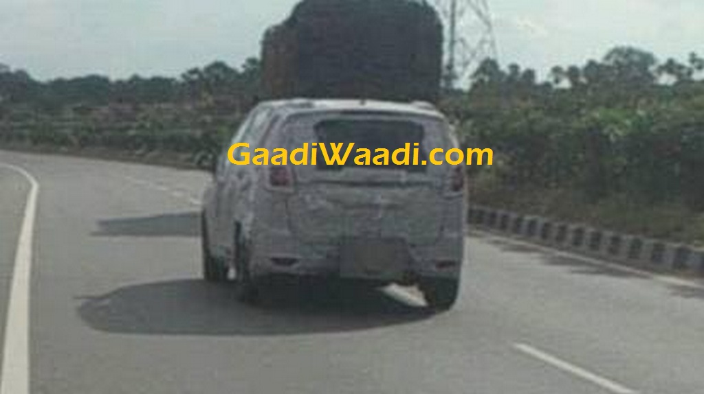 With the new Toyota Innova Crysta racing ahead with 7,500 units sold in June 2016 itself, the very first month of its tenure, home grown makers Tata and Mahindra are yet to respond. While the former is dilly dallying the launch of its Hexa premium SUV (Aria replacement), the latter’s assault has been unearthed for the very first time. Spied here under a full body camouflage is Mahindra’s upcoming large MPV that’ll replace the aging Xylo.