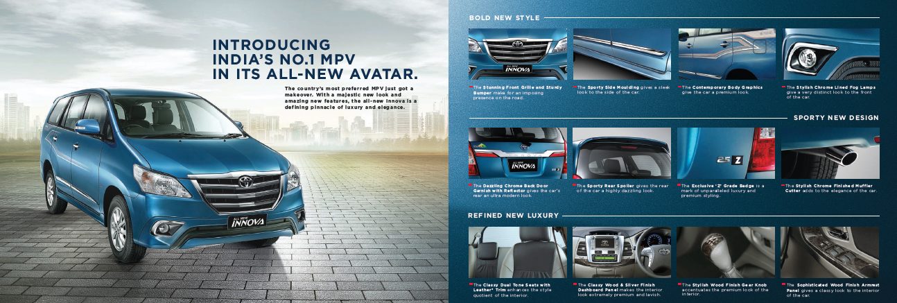 Updated 2013 Toyota Innova facelift launched in India. Prices starting from INR 9.77 lakhsNews / By Yatharth Singh Chauhan / October 5, 2013 / 2 minutes of reading e-Brochure Pages: 1 2