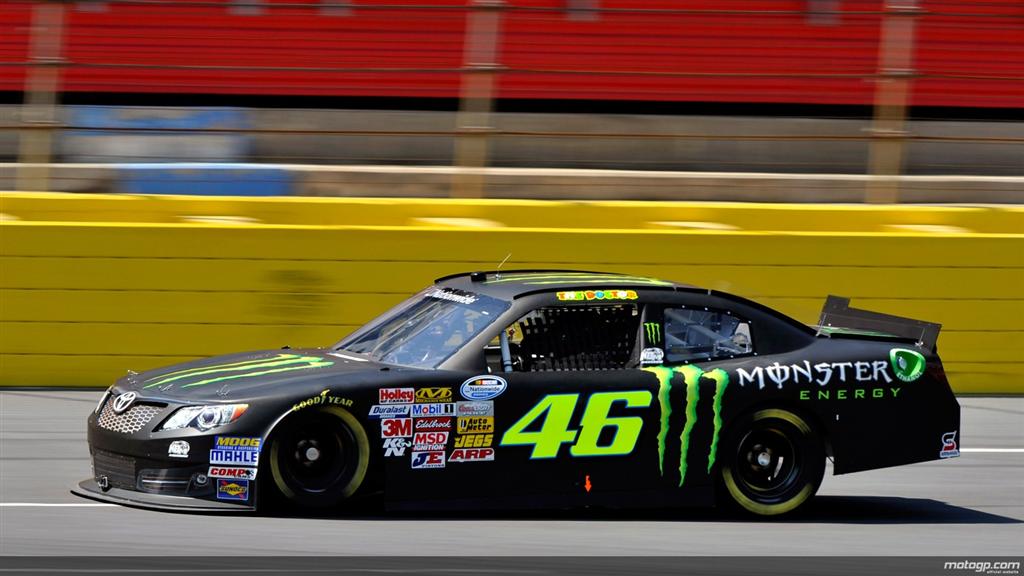 Finishing the Austin MotoGP at a disappointing sixth place after a tremendous second podium in Qatar, Valentino Rossi took to the Charlotte Motor Speedway, but this time on four wheels. Caged inside a 650 bhp V8 Toyota Camry belonging to three time NASCAR champion Kyle Busch, Rossi took part in a promotional event for Monster Energy Racing clocking a top speed of 185 mph (297 kph) on track.