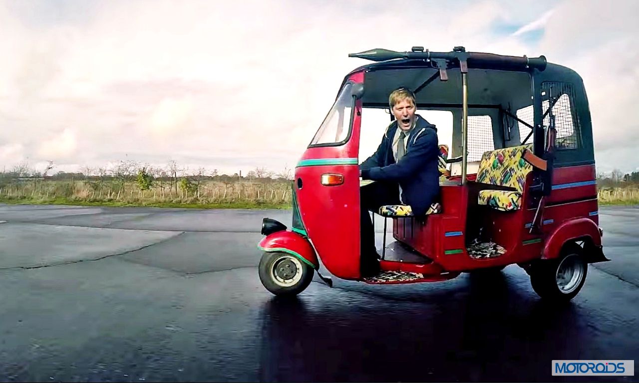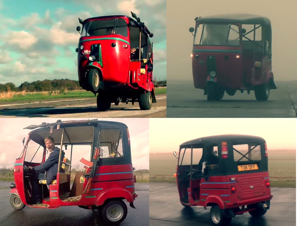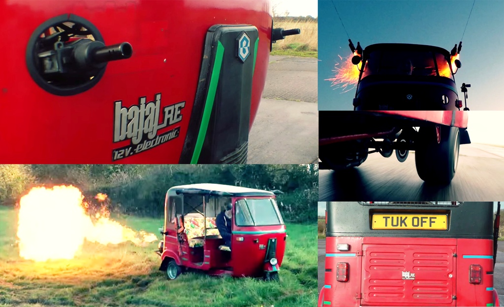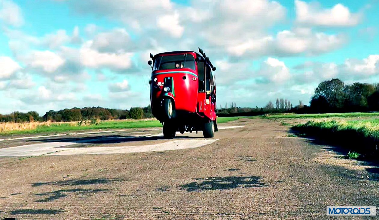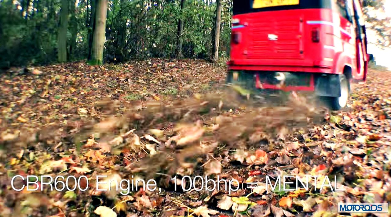 Remember the completely mad-hatter 100 bhp auto-rickshaw from last week? Well, its back now and finally we see it on the go, and boy, she can move. The brainchild of DIY specialist Colin Furze, this once-humble Hamara Bajaj RE rick packs a Honda CBR600RR motorcycle’s manic 600 cc, liquid cooled, inline four engine. In it’s current state of tune, the engine produces almost 100 bhp, certifying the antics you see here.
