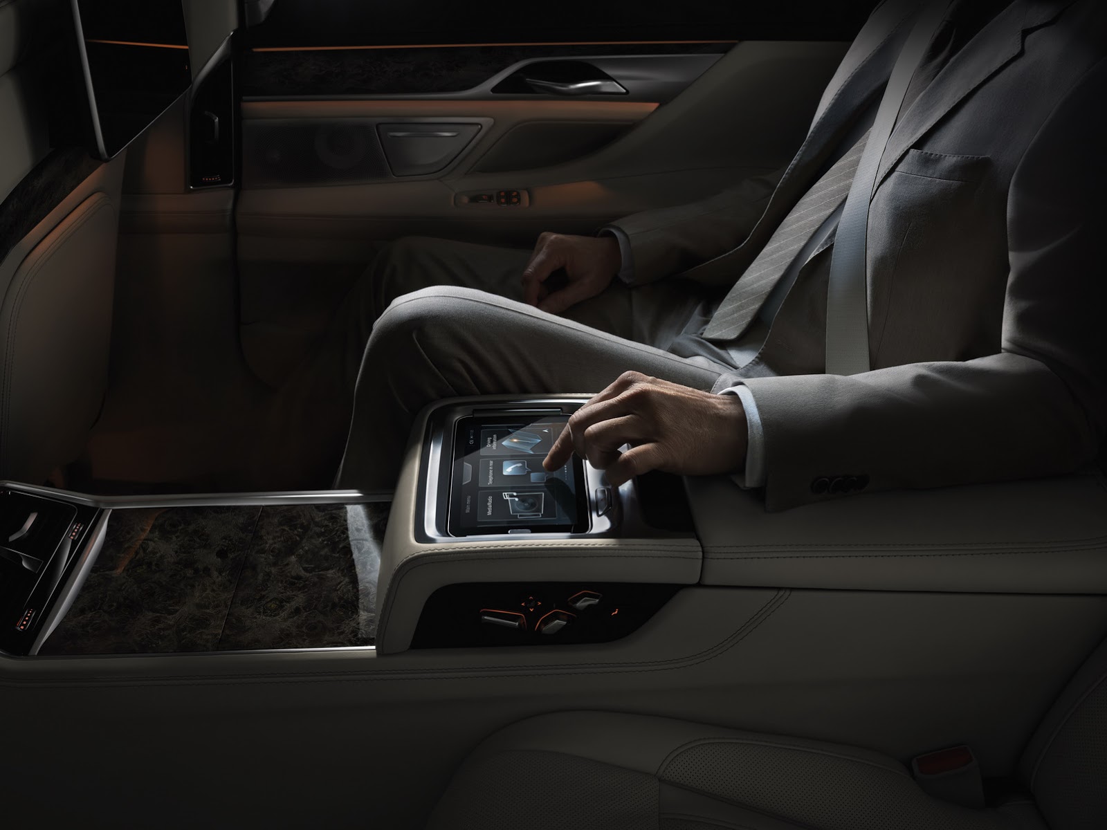 The sumptuous, reclining rear seats are called the Executive Lounge and fatcats can catch up on their work using the integrated tables, which fold away in the depths of the central armrest. Then there’s the BMW Touch Command, which can control up to 24 different comfort, navigation and entertainment functions via a tablet. The tablet acts as a remote control, and can also be used to kick in the vitality system, the massage seats, or even change the position of the Executive Lounge.