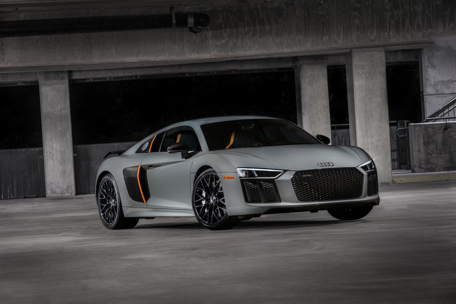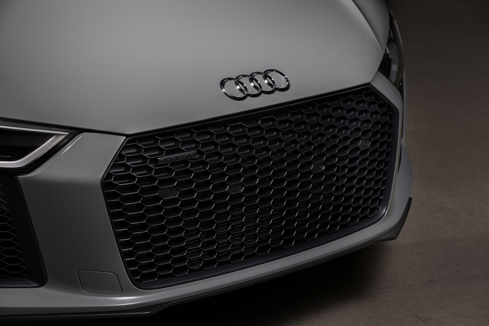 Moving on to the new stuff on the exterior, the 2017 Audi R8 V10 Plus Exclusive edition is finished in a Quantum Gray paintwork complimented by a titanium black-optic exterior package. The package includes a high-gloss anthracite finished front grille and 20-inch 10-spoke-Y-design rims. The overall new look is completed by a front lip spoiler, exterior mirror housings, carbon fiber rear diffuser, and a fixed rear wing spoiler.