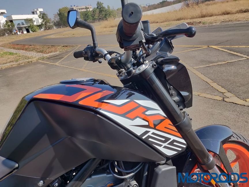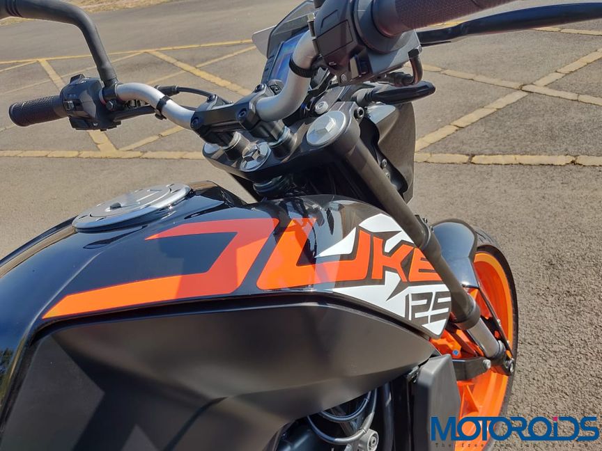 Well the motor might be down on power, but you get a proper trellis frame, USD front forks, and the same orange wheels from the 200 Duke, wrapped around by a nicely rounded tyre profile. With 14.5 PS @ 9,250 rpm and 12 Nm @ 8,000 rpm to play with, unlike any other 125 bike, this Austrian loves being revved. Hitting its red line at 9,500 rpm, it takes another 1,000 clicks for the limiter to cut in. And right till there, the engine feels smooth and vibration free, even at the limit.