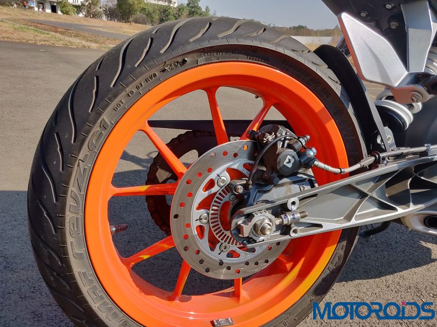 Although one has six gears to play with, riding this motorcycle is a busy, but involving affair. The bike hits its 110 kph top speed in the 5th gear, where the sixth ratio is more of an overdrive. A 300 mm disc up front and a 230 mm disc at the rear haul the bike down in quick time. The addition of single channel ABS enhances safety and by KTM’s all-out standards, the suspension is still absorbent for our kind of streets. At nearly 42,000 less than the KTM Duke 200, you do get a motorcycle which looks premium, handles great, and in our opinion, if you have an ‘A’ bike for your serious rides, this one is an ideal ‘B’ for your within town commutes. Find a go-kart track and this motorcycle should feel right at home there. Until then, watch it go around Bajaj’s test track, just outside Pune.