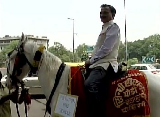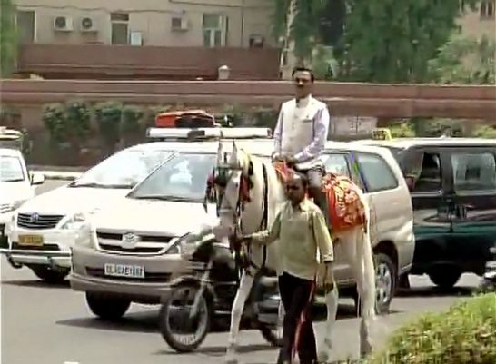 A placard tied with a rope on the neck of the horse allegedly read “Pollution Free Vehicle” as a means to protest against the odd-even rule. The MP’s chose to make their own ways to reach the parliament even as a dedicated bus for parliament members reportedly rode empty. The service was later scrapped due to the poor response. Sharma was reported demanding a car for the members or allowing the MP’s to be exempted from the rule which will continue in the region for 3 more days.