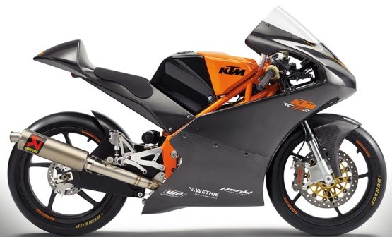 KTM Engineer Wolfgang Felber, Road Racing Senior Manager, commented about the new bike, “Basically the 2013 KTM RC250GP is a completely new bike. The only things that have not been changed are the rear swingarm unit and the wheels. All other components have been modified or bettered: frame, fork, tank, airbox, exhaust etc. Several parts have been simplified because the bike could be 3 to 4 kilos lighter. The engine received only marginal treatment because last year it already turned out to be very powerful and reliable as well. So power is up only a little.”