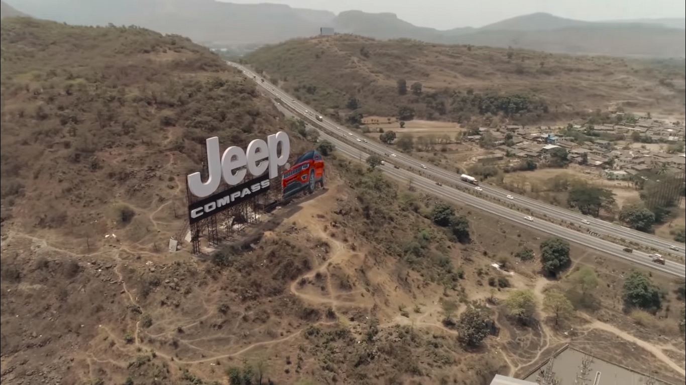 Jeep India has taken over a hill and turned it into a mountain to promote its Compass SUV. The Indian arm of the American brand has installed the country’s biggest billboard on the busy Mumbai-Pune Expressway to make sure no one misses it. However, installing a big billboard that’s 30 times larger than a standard one wasn’t a easy task. So, three weeks, 50 designs, 70 skilled craftsmen, 80,000 kg of metal later and 45 days later, here’s what Jeep India achieved: