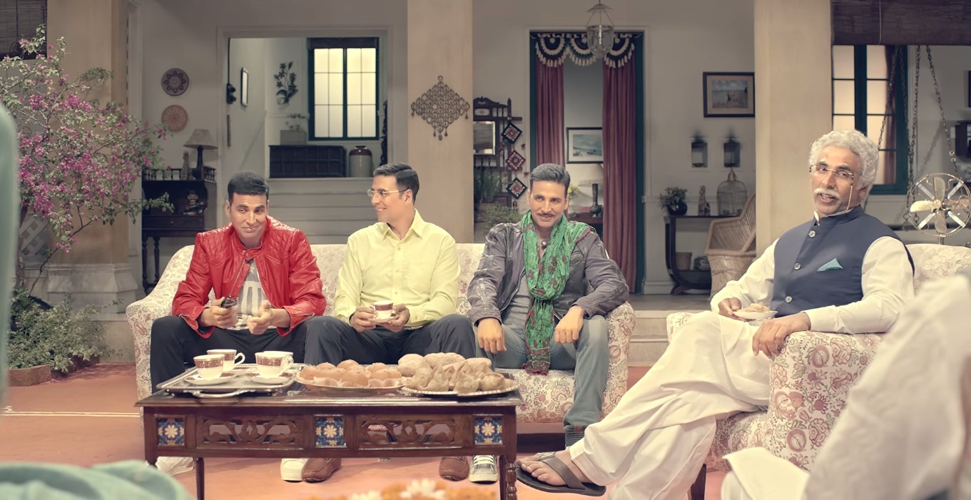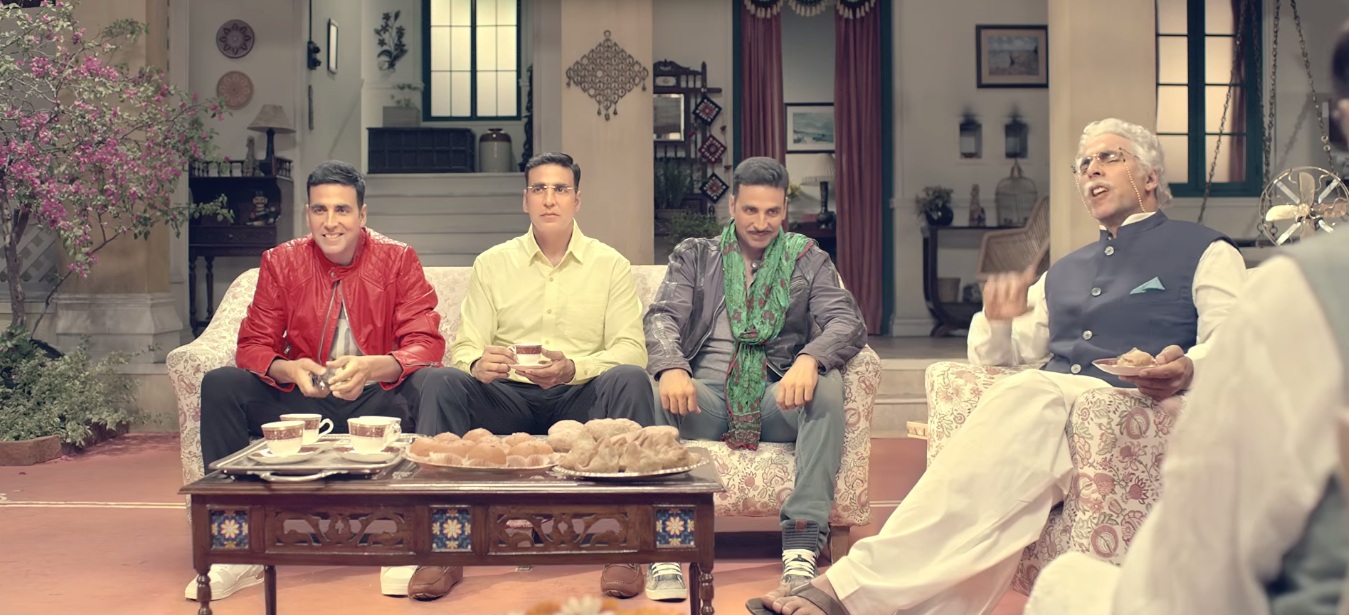 The film opens with the protagonist’s father (played by Akshay Kumar), who is sitting in a courtyard with an elderly man and a girl. The father is joined by his three sons or, the main protagonists (also played by Akshay Kumar) who arrive on their respective Honda motorcycles (Dream Yuga, Dream Neo and CD 110 Dream). The father approves of the girl to be his daughter-in-law but leaves it to her to decide who out of his three sons she would choose.