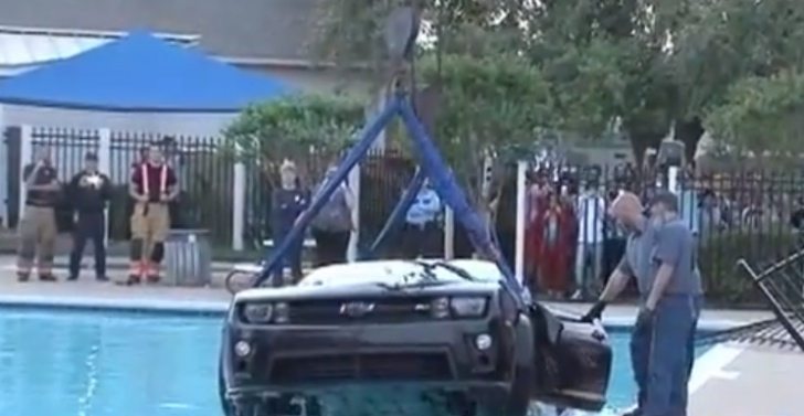 A brand new 2014 Chevrolet Camaro ZL1 ended up into a community pool in Harris County, Texas.