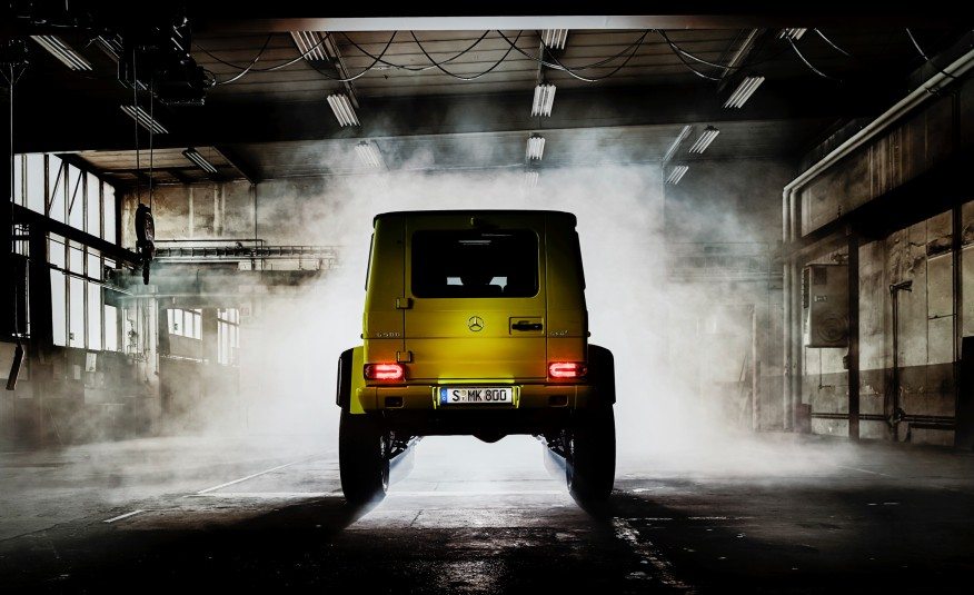 The hardcore, built-to-order Mercedes Benz G63 AMG 6×6 took the world by storm, but was a little big – too big actually- six humongous wheels full of boxy, vault-like, £370,000 Mercedes Benz G-Class pick-up. Step in the smaller – absolutely relatively speaking, the 4 wheeled version – the G500 4×4² (Squared).