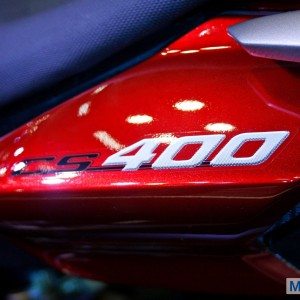 The CS400 will come equipped with features such as a fully digital, split instrument cluster (second half mounted on the fuel tank), a telescopic front suspension as opposed to the USD forks that was showcased on the model at the Auto Expo, and ABS as an optional feature. The Non-ABS model will feature MRF tyres.