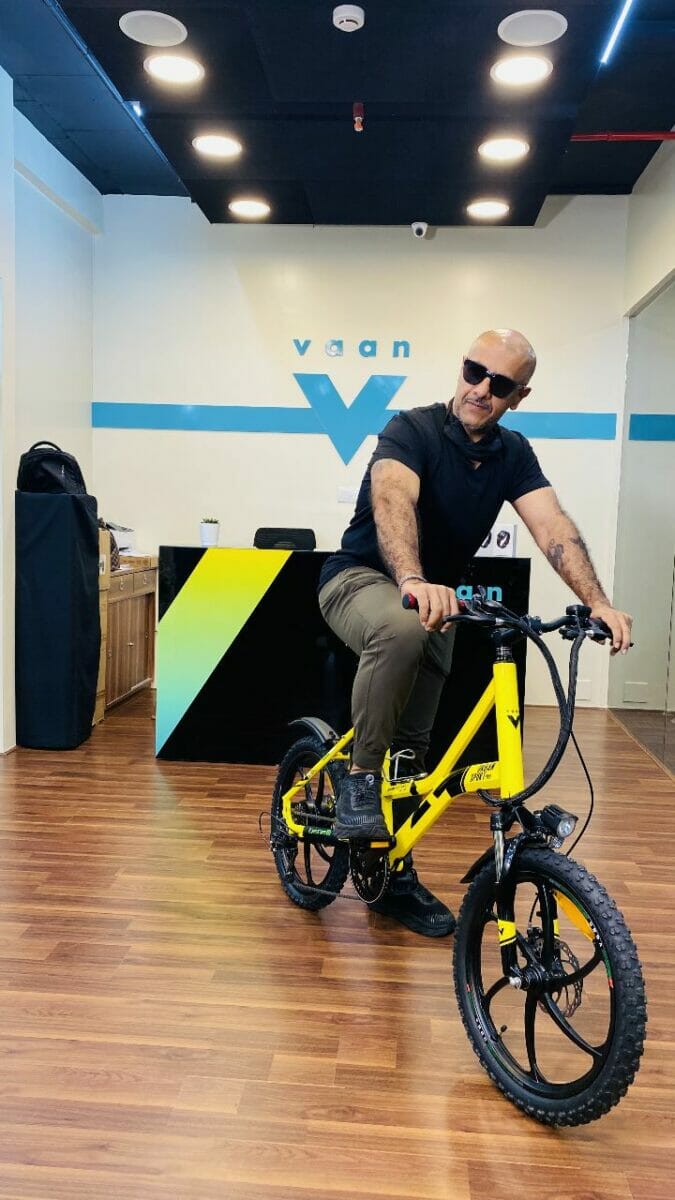 Mr. Jithu Sukumaran Nair, CEO and Founder of VAAN Electric Moto Pvt. Ltd., who was present for the ceremony, presented Vishal with the Urban Sport Pro e-bike. A replaceable 48V 7.5Ah Li-ion battery pack with a 60 KM maximum range is included with the VAAN Urban sport Pro. The e-bike retails for INR 72,999 plus taxes and offers a power-assisted mode with five-level electric gears and a full-throttle mode with top speeds of up to 25 kilometers per hour (ex-showroom Mumbai).