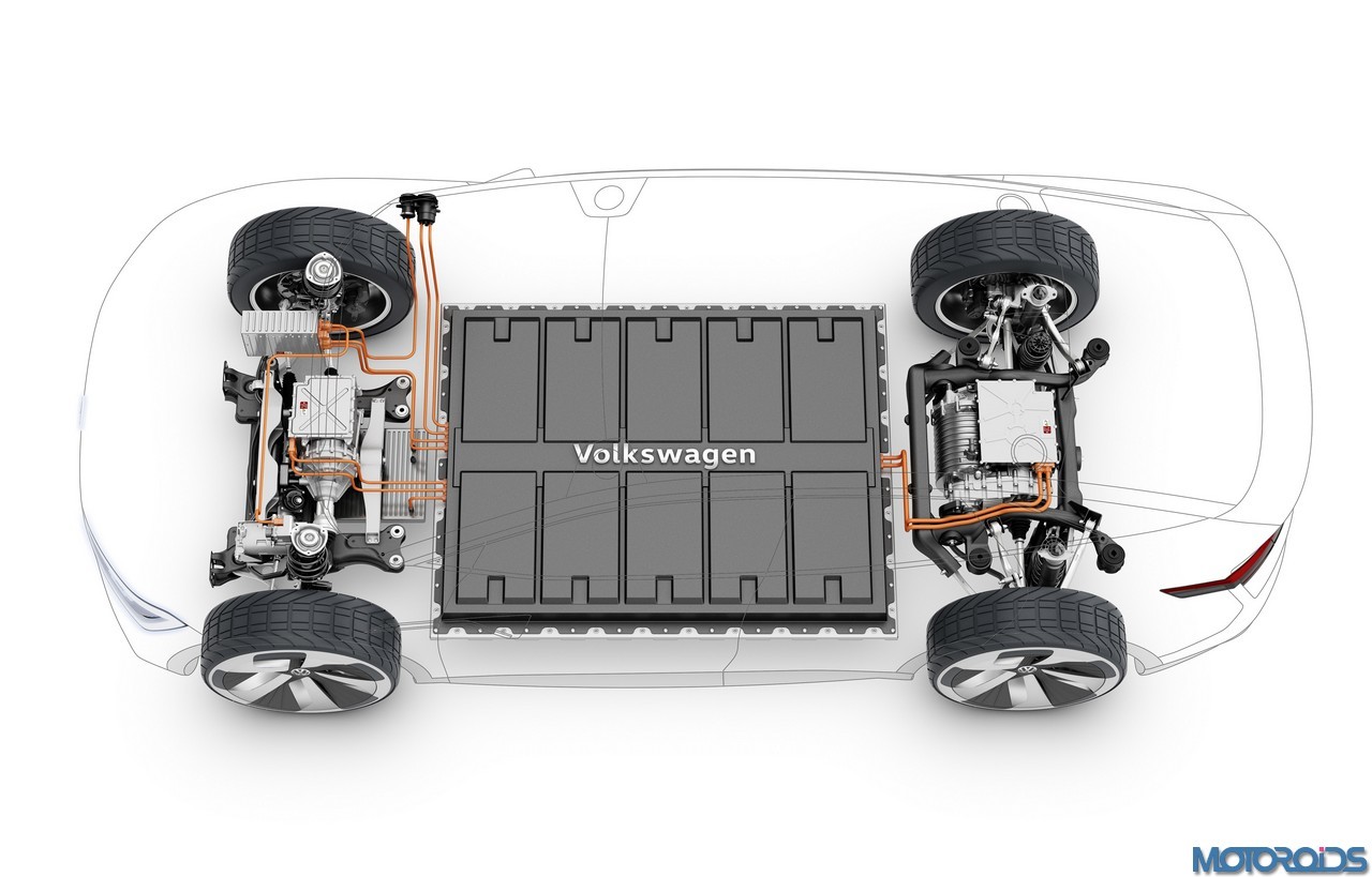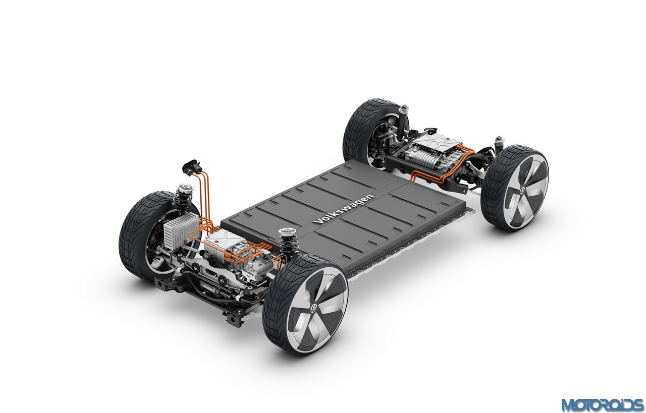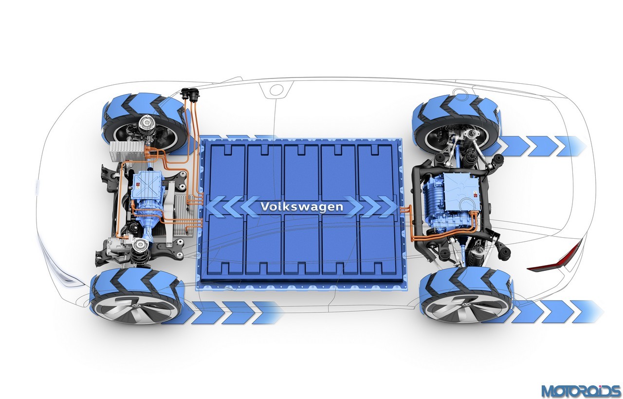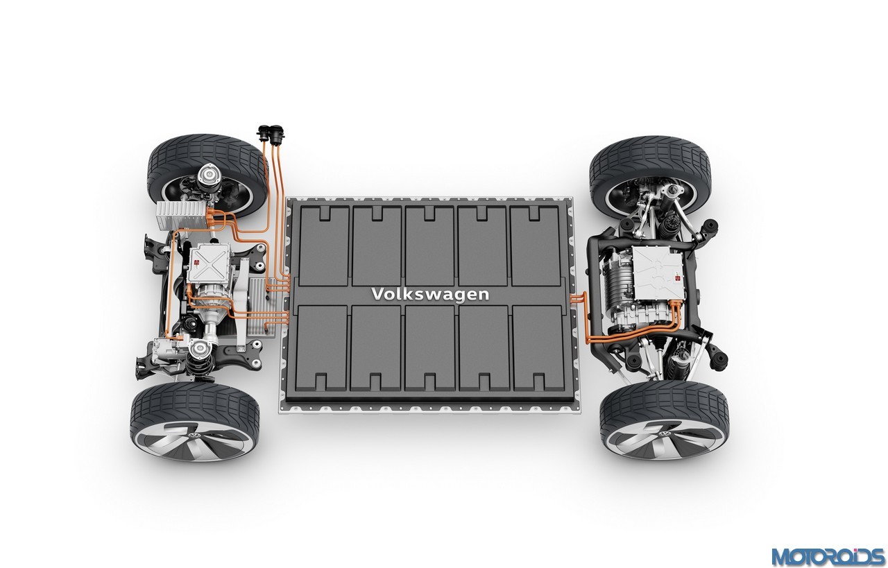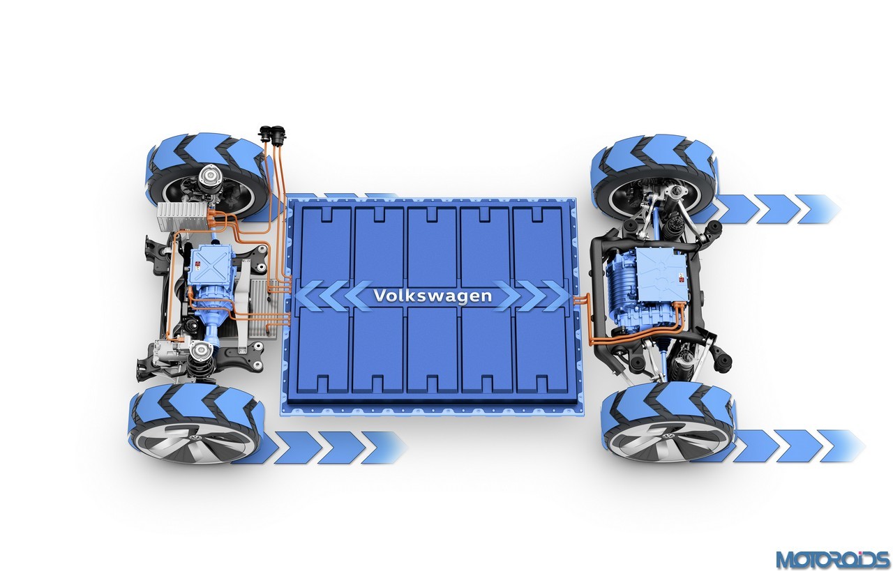 The I.D. CROZZ is more compact than Volkswagen’s latest production SUV, the New Tiguan L (China) which is also produced as the Tiguan Allspace (Europe). And yet the CUV provides just as much space, says VW. This is because the I.D. CROZZ is based on the next-generation architecture for Volkswagen electric vehicles. The suspension and drive-train modules are positioned far to the outsides of the vehicle and exhibit very compact construction.