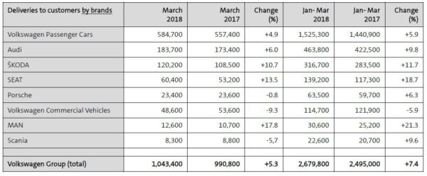 The Group delivered over 1.1 million vehicles in Europe in the first quarter of 2018 (+4.1 percent). Group deliveries in March grew 1.2 percent to 479,900 new vehicles. 407,400 vehicles were handed over to customers in Western Europe in March, of which 130,100 units were delivered in the home market of Germany (-1.2 percent). 72,500, deliveries of new vehicles from the Group in the markets of Central and Eastern Europe were 13.2 percent up on the same month last year. From January to March the Group delivered 954,400 vehicles in Western Europe (+2.8 percent) and 188,900 units in Central and Eastern Europe (+11.4 percent).