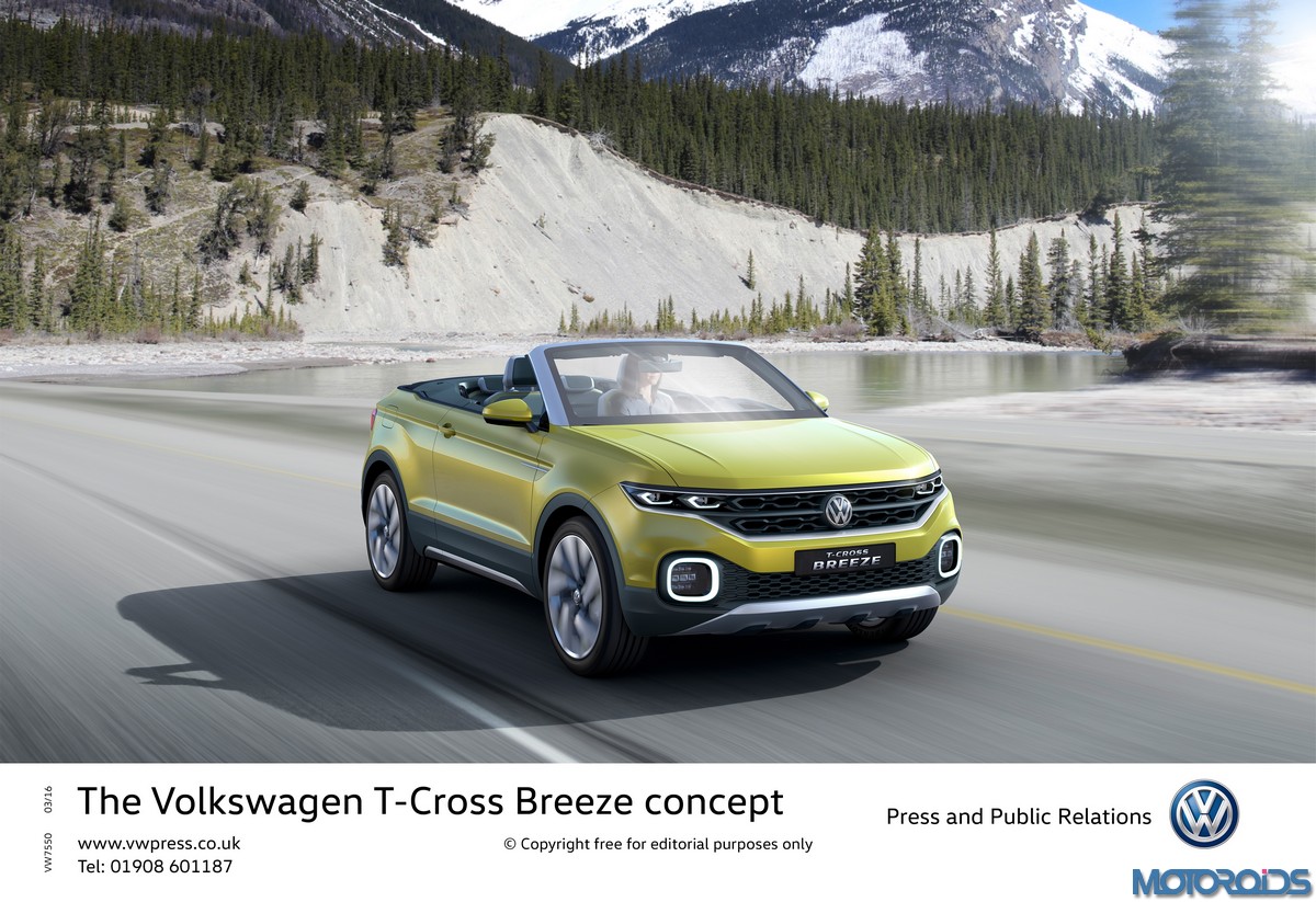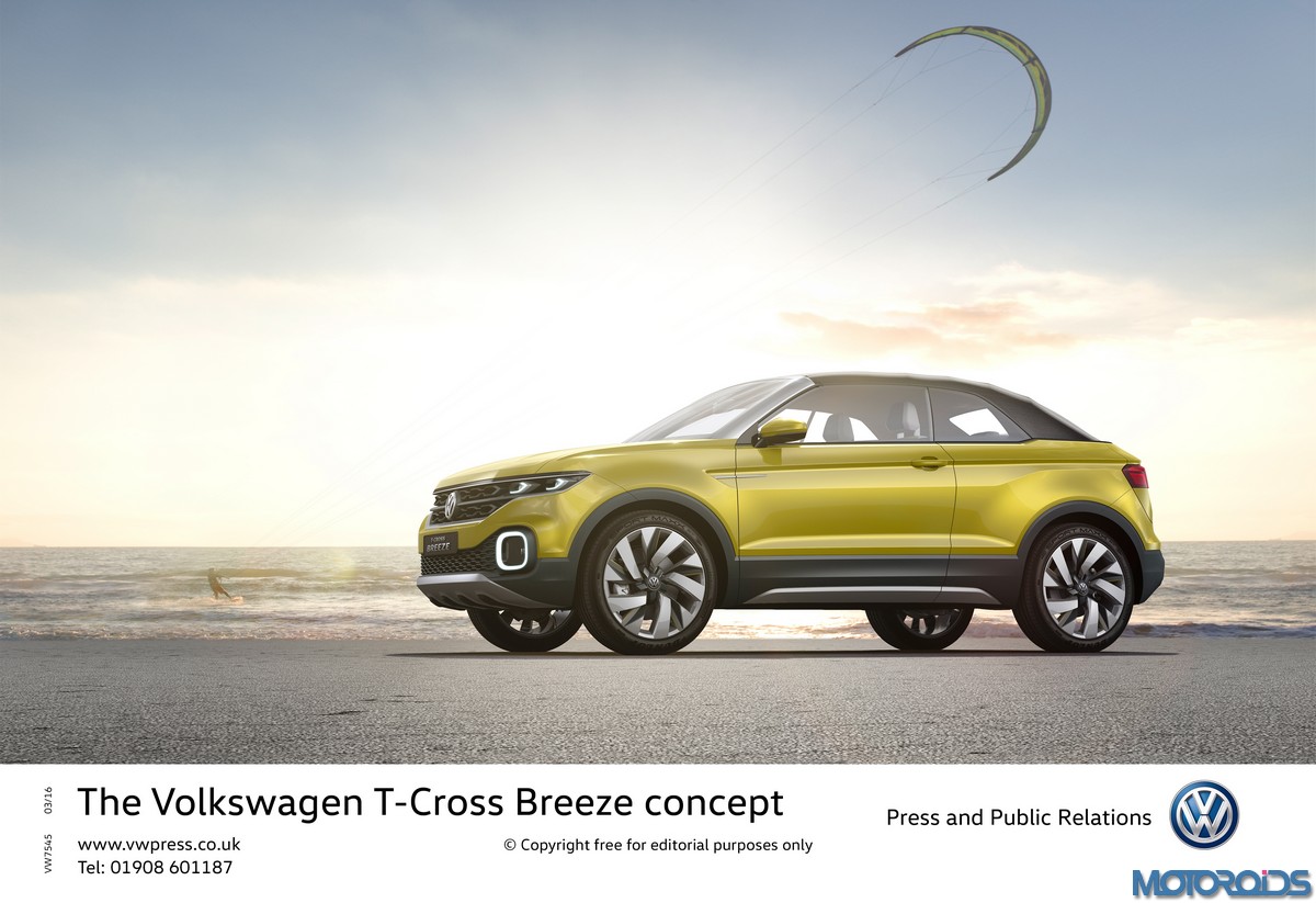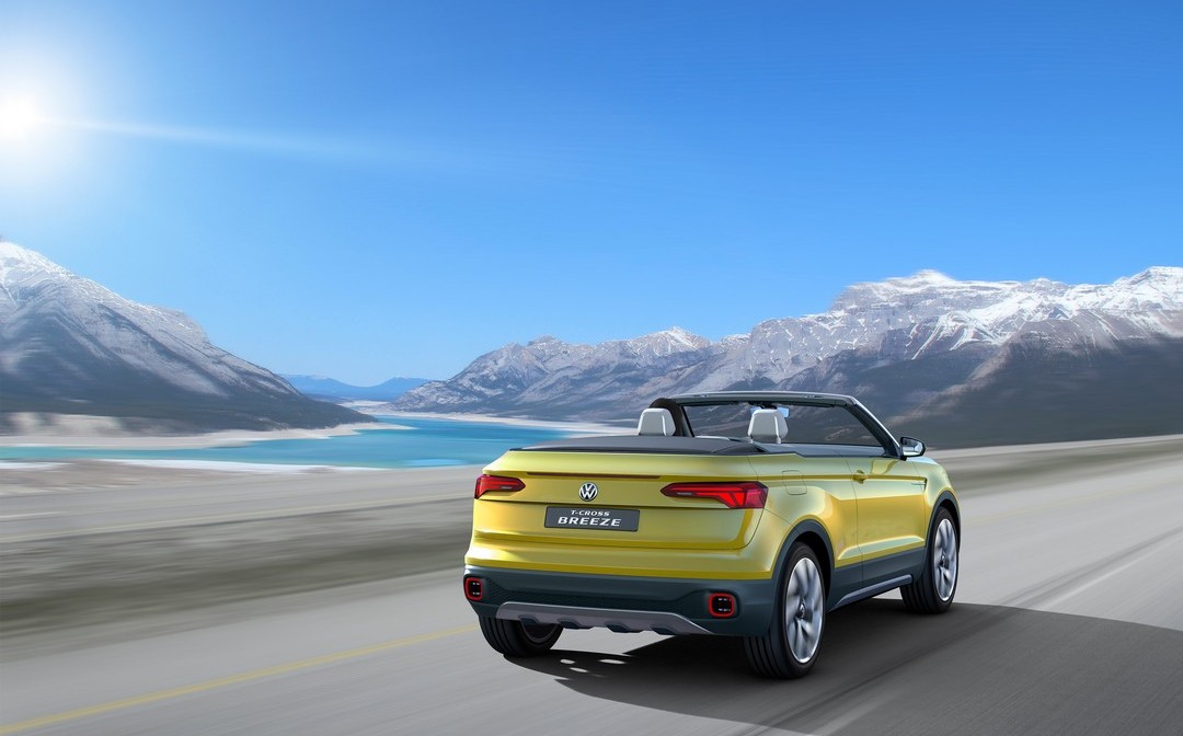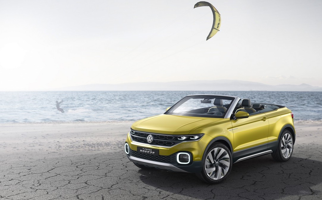 While the luscious new Range Rover Evoque convertible will ask a keg full of monies for its services, the new Volkswagen T-Cross Breeze Concept will cost a bit more than the Polo its based on; if it enters production that is. But rest assured, a roofed version of the Breeze concept will be here by 2017, representing Volkswagen’s entry level crossover. The T-Cross Breeze previews a compact SUV based on the Polo, and is the first convertible SUV in the segment. In the future, the T-Cross Breeze will be will be joined by two more SUV model series, apart from the Tiguan and Touareg models. Below the Tiguan, two new SUV model series based on the Golf will come; one of which will be inspired by the T-Roc concept car, while the T-Cross Breeze presented in Geneva shows VW’s Polo class crossover.