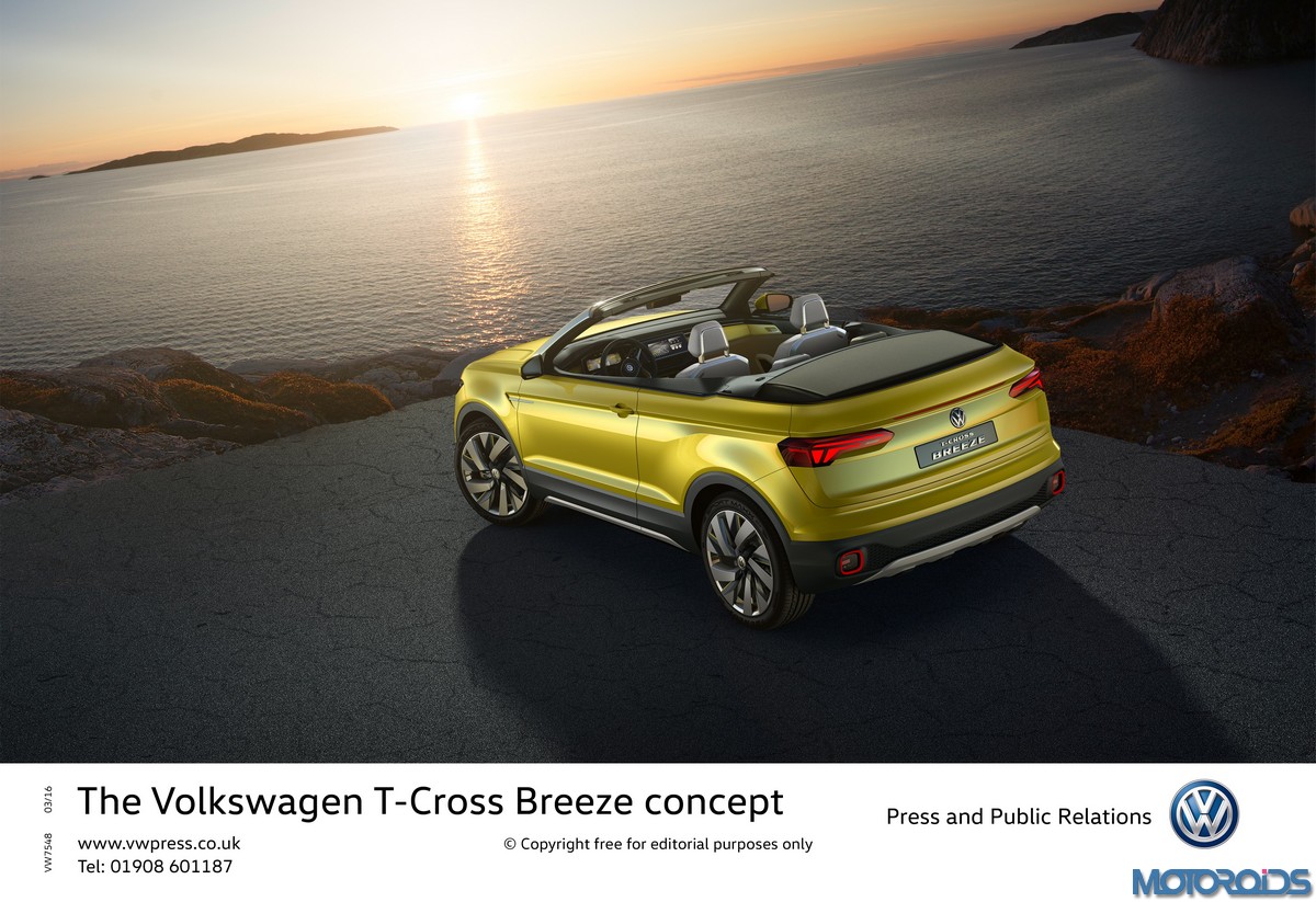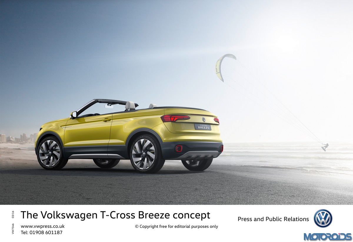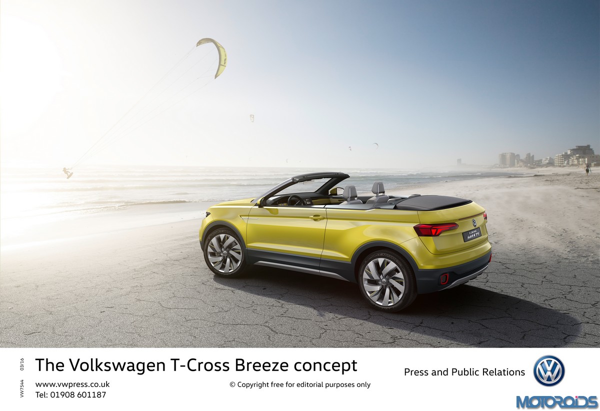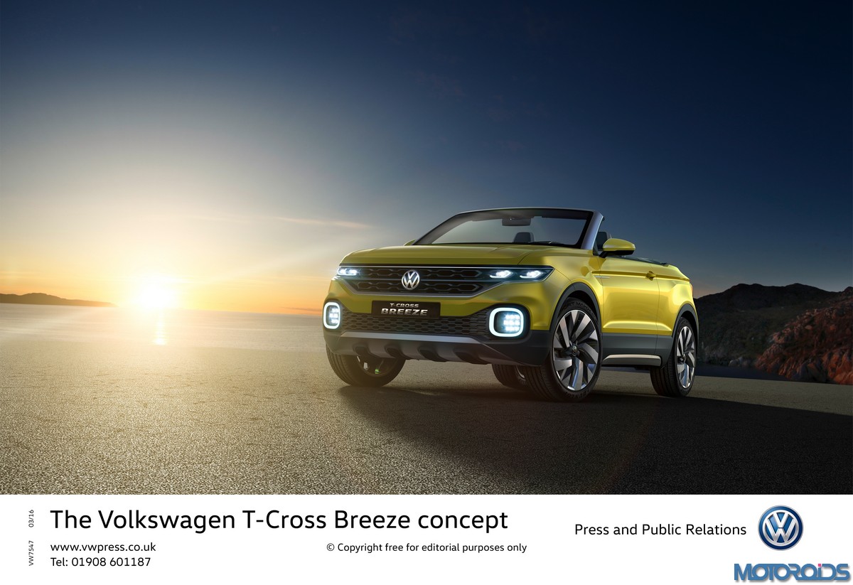 While the luscious new Range Rover Evoque convertible will ask a keg full of monies for its services, the new Volkswagen T-Cross Breeze Concept will cost a bit more than the Polo its based on; if it enters production that is. But rest assured, a roofed version of the Breeze concept will be here by 2017, representing Volkswagen’s entry level crossover. The T-Cross Breeze previews a compact SUV based on the Polo, and is the first convertible SUV in the segment. In the future, the T-Cross Breeze will be will be joined by two more SUV model series, apart from the Tiguan and Touareg models. Below the Tiguan, two new SUV model series based on the Golf will come; one of which will be inspired by the T-Roc concept car, while the T-Cross Breeze presented in Geneva shows VW’s Polo class crossover.