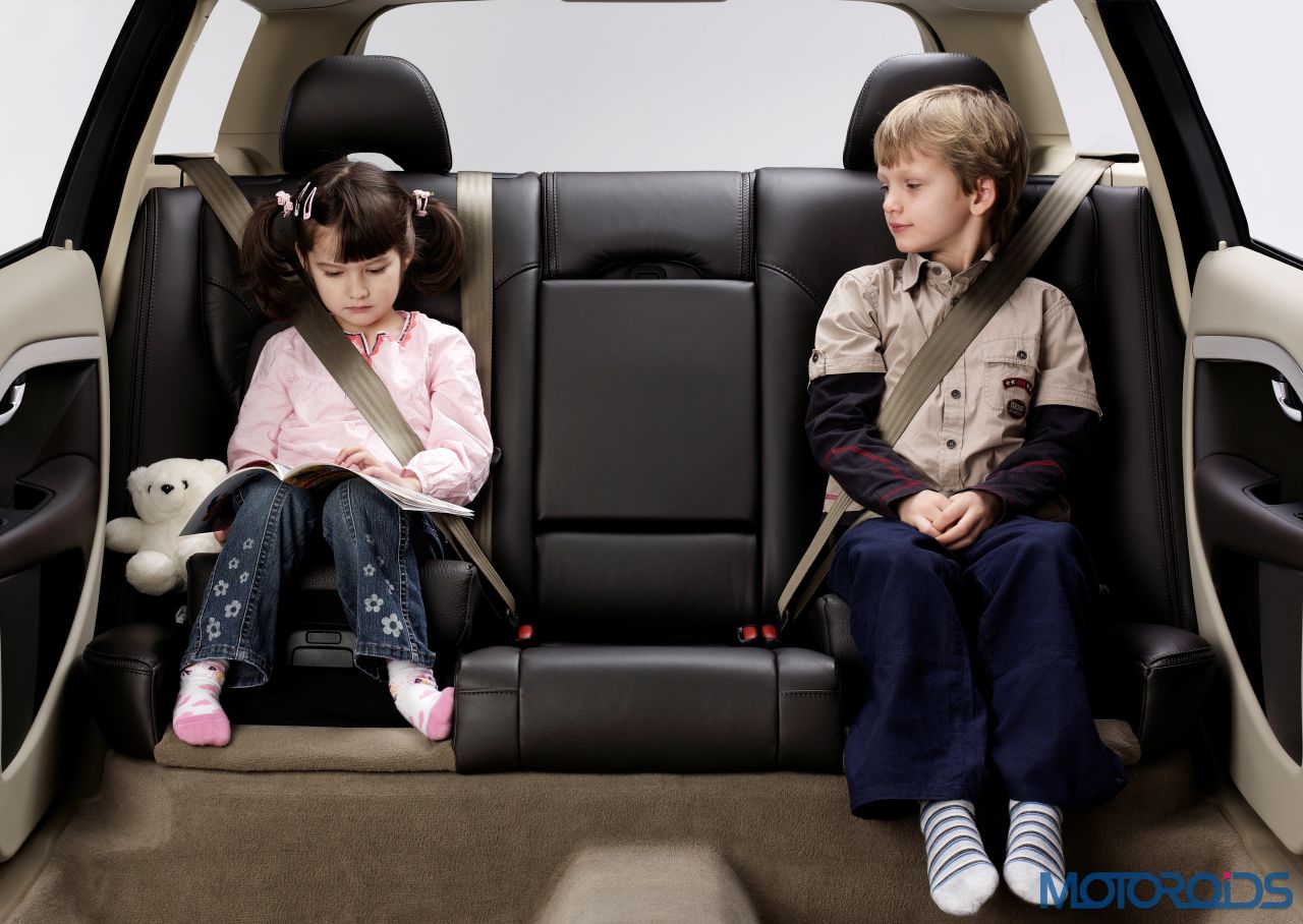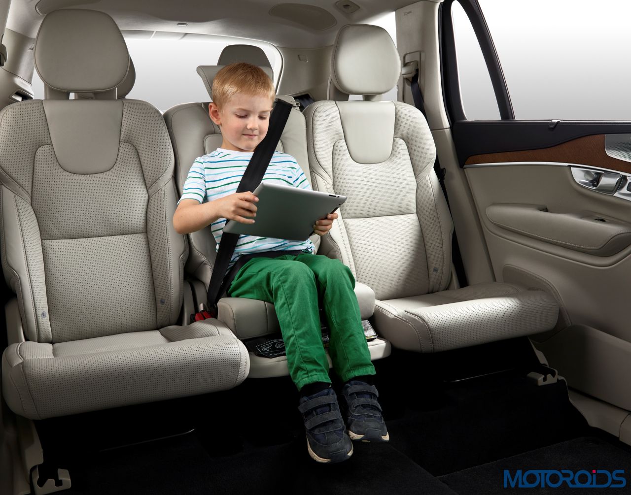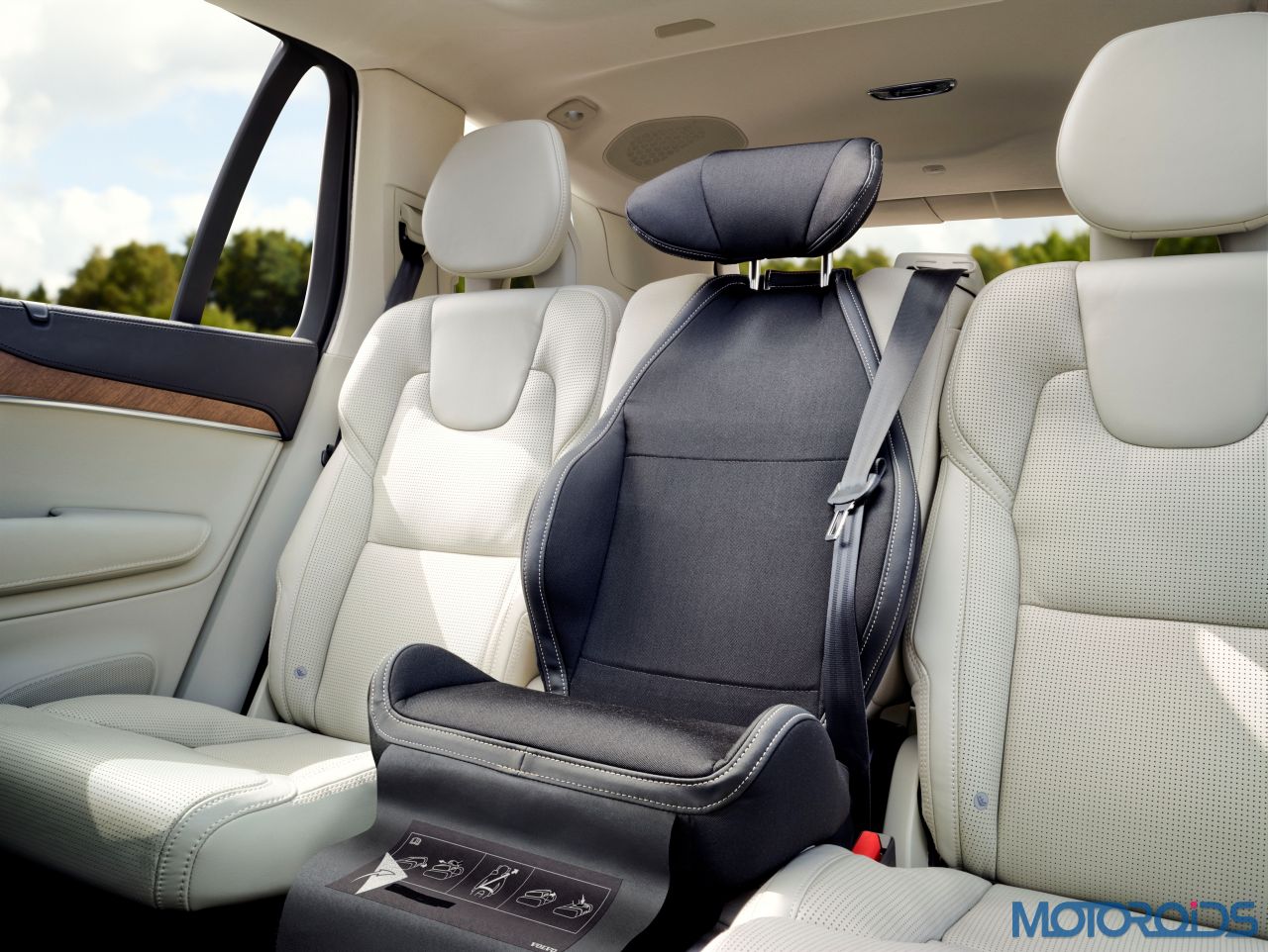 Comfort upholstery and head support for the integrated booster cushion available to the XC90