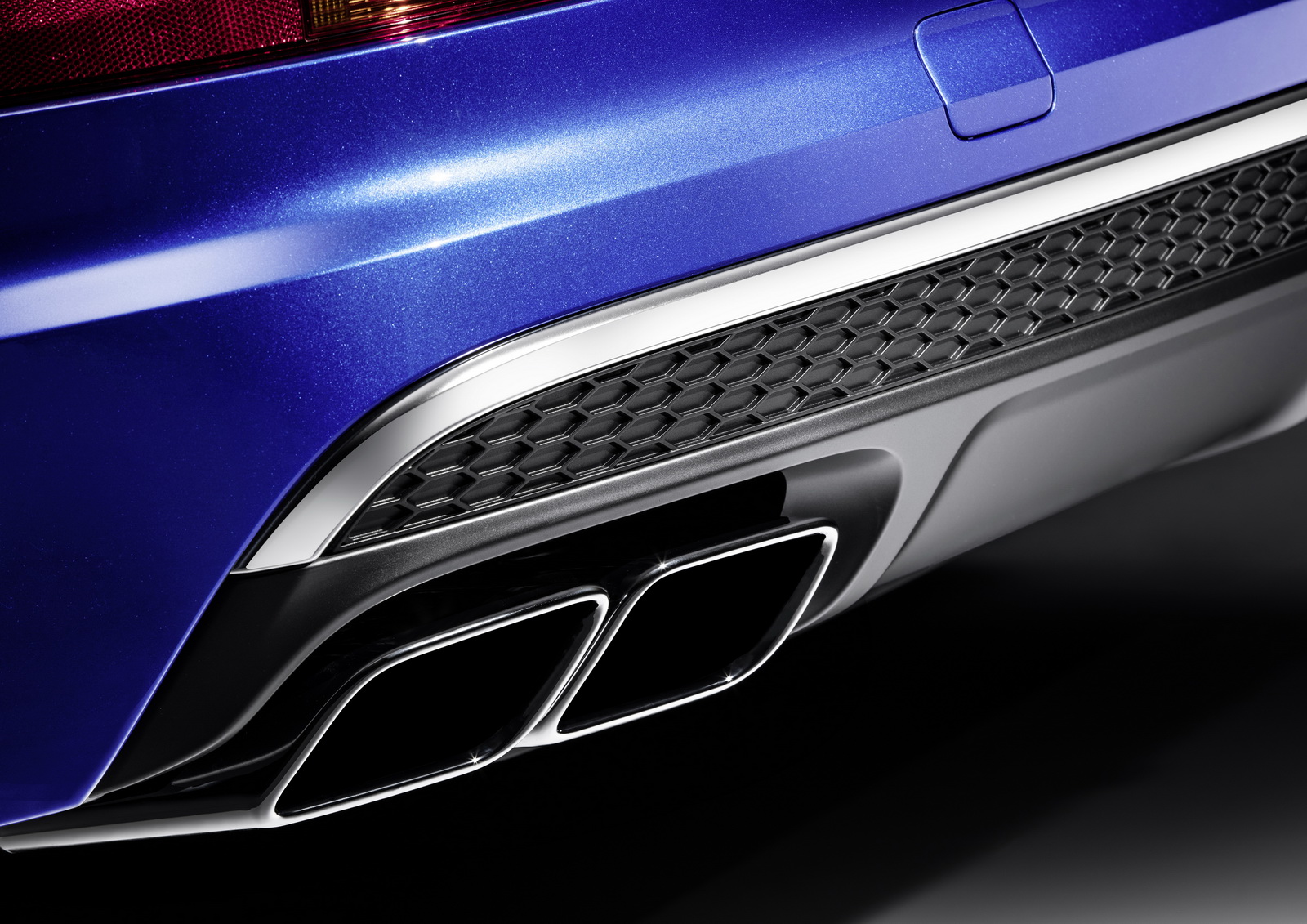 On the outside, the SQ7 TDI has a new radiator grille with an S‑specific design at the bumpers, along with Audi’s optional Matrix LED headlamps. Other distinguishing features are the side air inlets, the mirror housings and door inlays in standard aluminum. The exhaust system terminates in four rectangular tailpipes. Audi offers the performance SUV with 20‑inch wheels on 285/45 tires, with options up to 22 inches. The new SQ7 TDI is available in 12 colors, while the radiator grille and underbody guard that encloses the four rectangular tailpipes are finished in twilight gray matt.