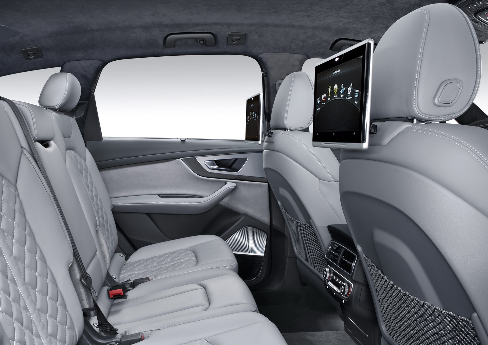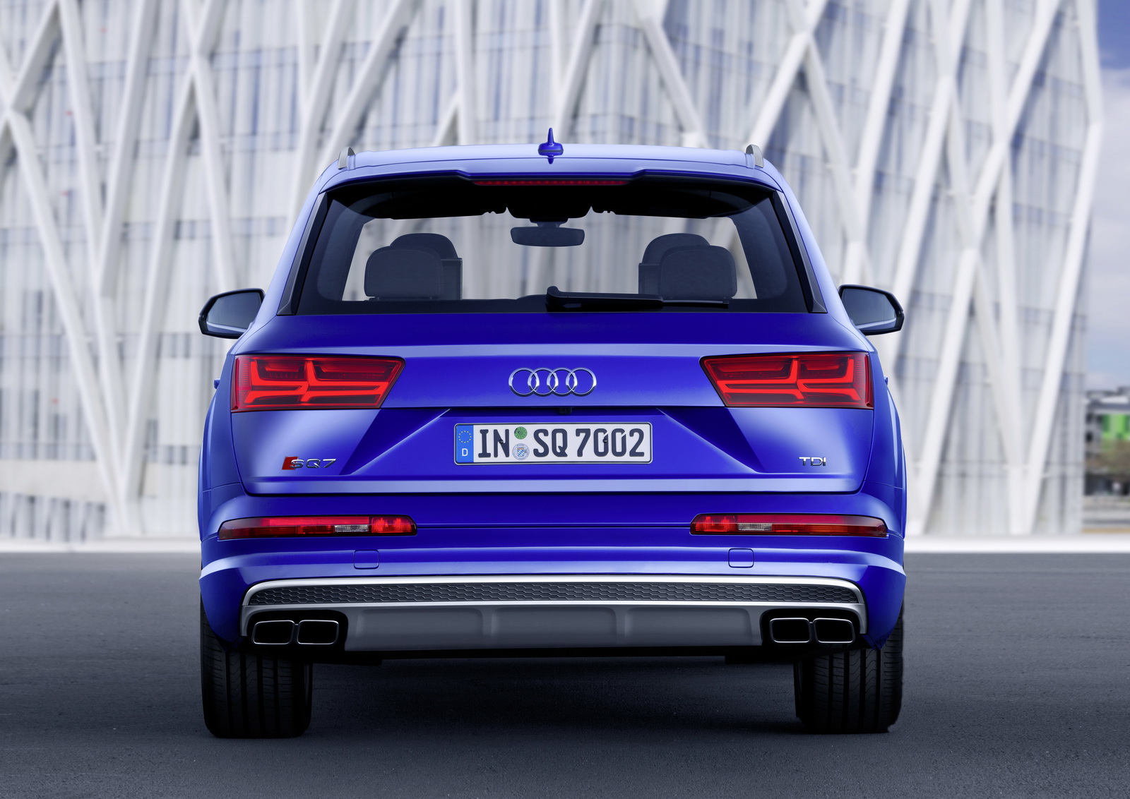 Inside, Audi offers the new SQ7 TDI with a choice of either five or seven seats, MMI navigation plus with Audi connect, an optional, 23-speaker, 1,920 watt, Bang & Olufsen sound system, and the optional Audi virtual cockpit with a 12.3‑inch display. Other features include electrically adjustable and heated sport seats in Alcantara and leather, brushed aluminum inlays, 3-spoke multifunction steering wheel with shift paddles, and an anti-theft alarm. The SQ7 TDI is also available with the design selection Kodiak brown: a full-leather interior with contrasting stitching, an Alcantara black headlining, sport seats plus with Valcona leather in Kodiak brown and contrasting stitching, and velour floor mats. The SQ7 TDI offers a range of 24 driver assistance systems, which include the standard Audi pre sense city, adaptive cruise control with traffic jam assist, and predictive ACC. In Europe, the Audi SQ7 TDI can be ordered beginning spring 2016. It will be offered in Germany for a base price of €89,900.