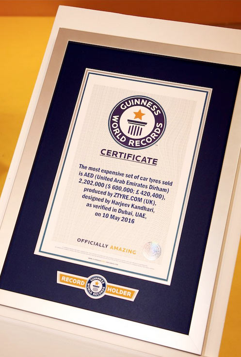 Dubai-based Z Tyre has unveiled a set of diamond and 24-carat gold-encrusted tires, which exchanged hands for a jaw-dropping $600,000 (INR 4.03 Crore), effortlessly sailing into the Guinness Book of World Records as the “World’s Most Expensive Set of Tires.” The tires have been decorated by Italian artisan jewelers before being returned to Dubai for an application of gold leafing by craftspeople who also helped adorn the presidential palace in Abu Dhabi.