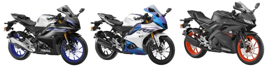 The R15 M is at the top with a TFT display, standard quickshifter, premium paint schemes and Yamaha Racing graphics. The Icon Performance version is slightly more expensive, only due to its exclusive colour.