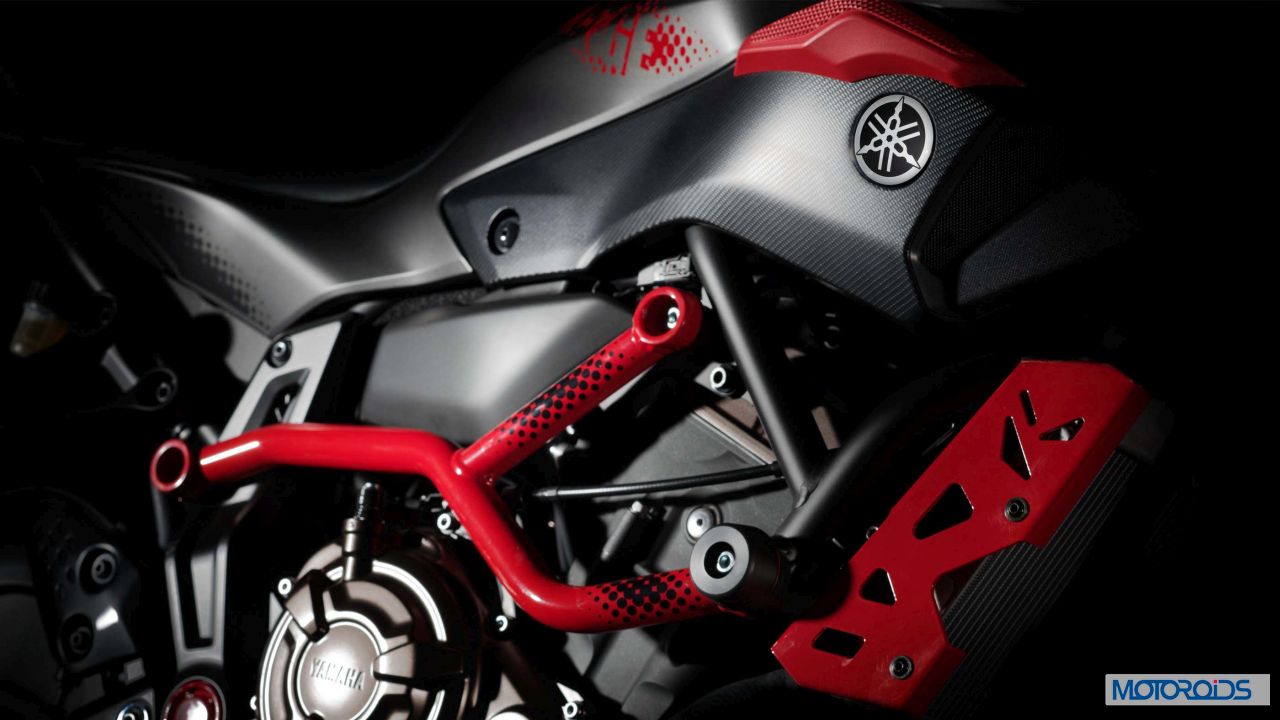 With the Moto Cage monicker, the MT07 has gone extreme, or so claims Yamaha’s official release. “The Dark Side of Japan meets the acrobatic stunt world with this new variation of Yamaha’s best selling MT 07,” proclaims the official press document from the Land of the Rising Sun.