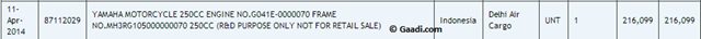 It is being expected that the Yamaha YZF R25 India launch would happen towards the end of this year. However, it has recently emerged that Yamaha India has imported an unknown 250cc motorcycle into the country for “Research and Development” purposes. There are very good chances that the imported bike is none other than the new Yamaha YZF R25, which has been unveiled in Indonesia recently. The 250cc Yamaha Motorcycle that has been imported into India has a declared value of INR 2,16,099. While the Yamaha has unveiled only one unit of this motorcycle to our country, this figure does give us a rough idea of what the Yamaha YZF R25 price in India could be like.