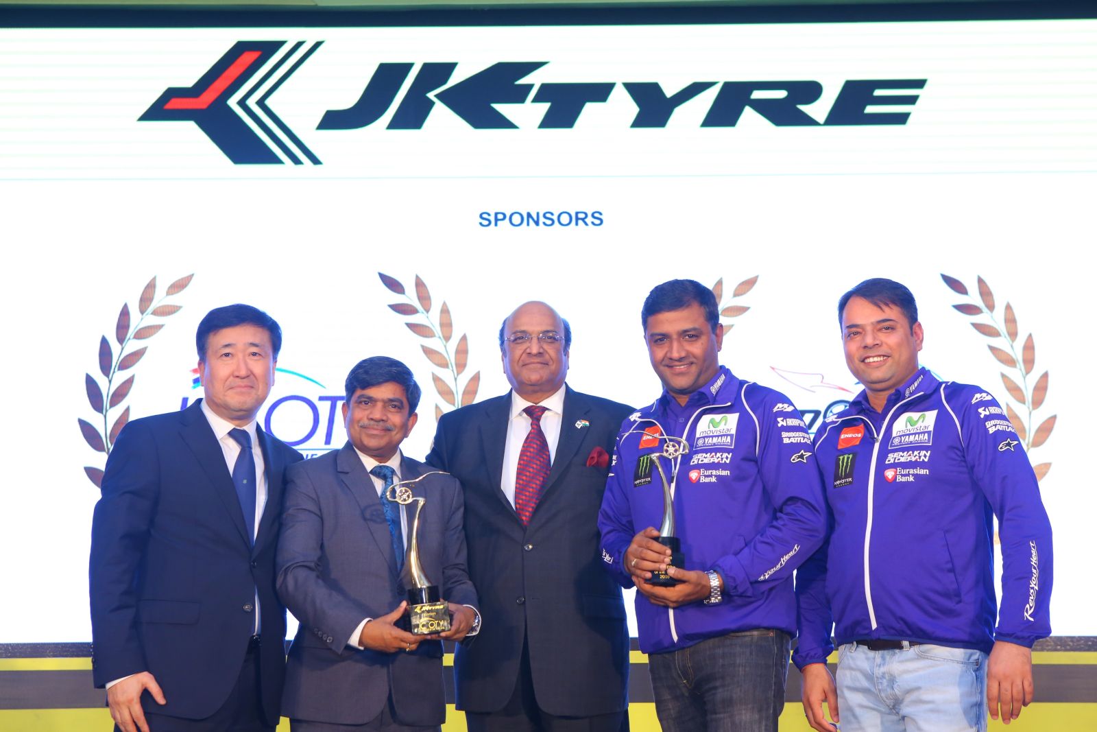 Dr. Raghupati Singhania, Chairman & Managing Director, JK Tyre & Industries Limited, Bob Rupani, Chairman ICOTY 2016 and Aspi Bhathena, Chairman, IMOTY 2016, presented the Indian Motorcycle of the Year trophy to the Yamaha Motor Company on behalf of the jury of IMOTY 2016.