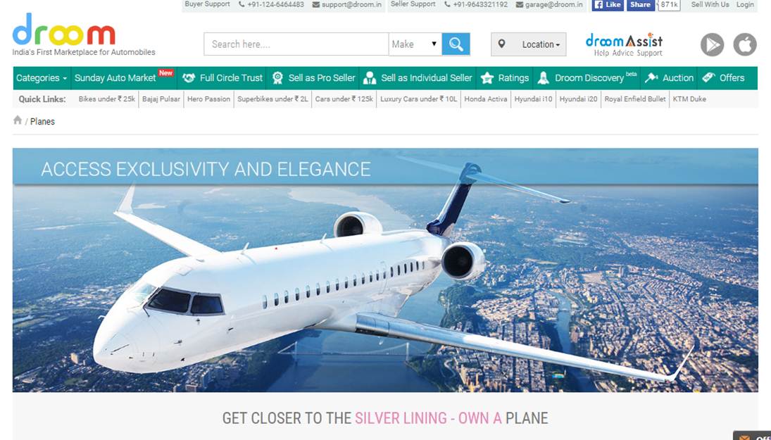 Droom is presently one of the largest online automobile marketplaces in India with product offerings in 14 different automobile categories including auto services, over 10,000 sellers and more than 6,000 listings. The addition of the aerial vehicle segment gives the company the opportunity to tap into the ever-expanding private aviation segments by utilising JetSetGo’s resources. Additionally, Droom is launching the fun rides & experiences category where a party in the sky, a joyride with family, or a corporate getaway can be booked across droom platforms.