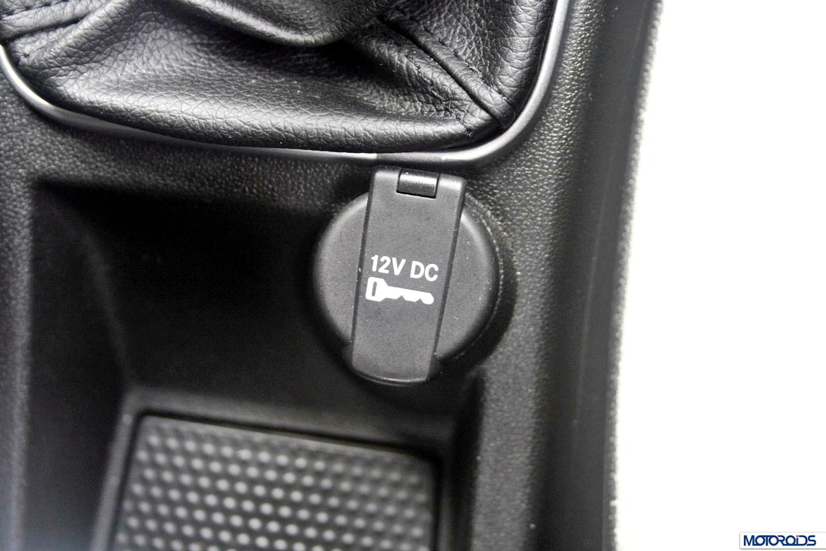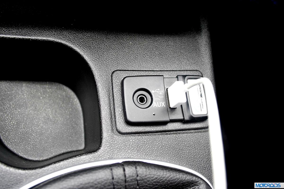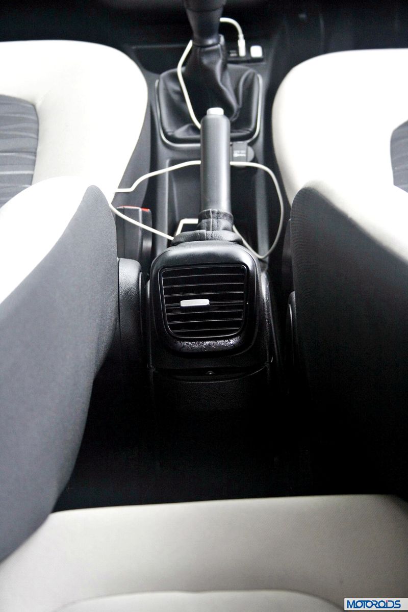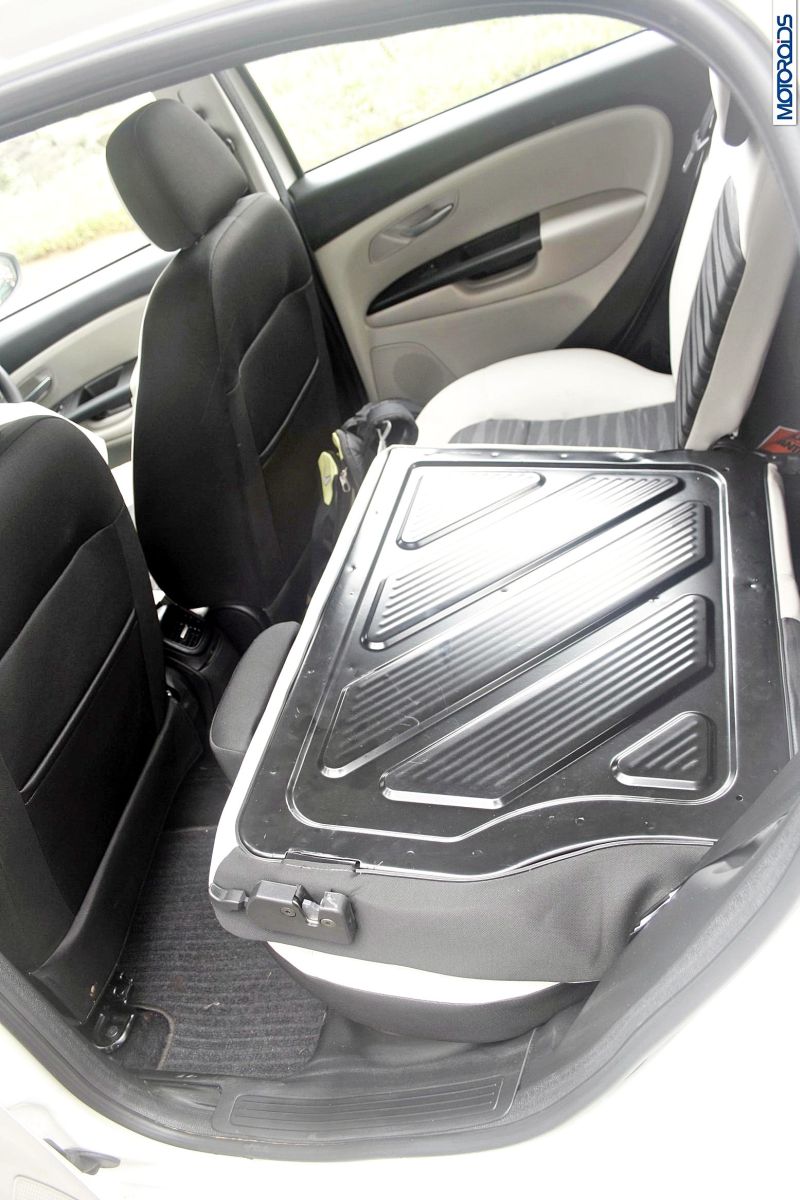 The USB port that nestled inside the glove compartment has now been moved ahead of the gear lever with AUX in port as well, sporting FIAT`s Blue & Me sticker. There is a small cubby hole which is handy for change coins etc. This set up has cost the space which was earlier utilized by twin cup holders in the Punto. A small rectangular recess lies under the handbrake lever, which isn’t the most convenient to access, with a 12V outlet near it. On both the tested cars, we struggled to pair our smartphones with the Blue & Me, though this could be an isolated case.