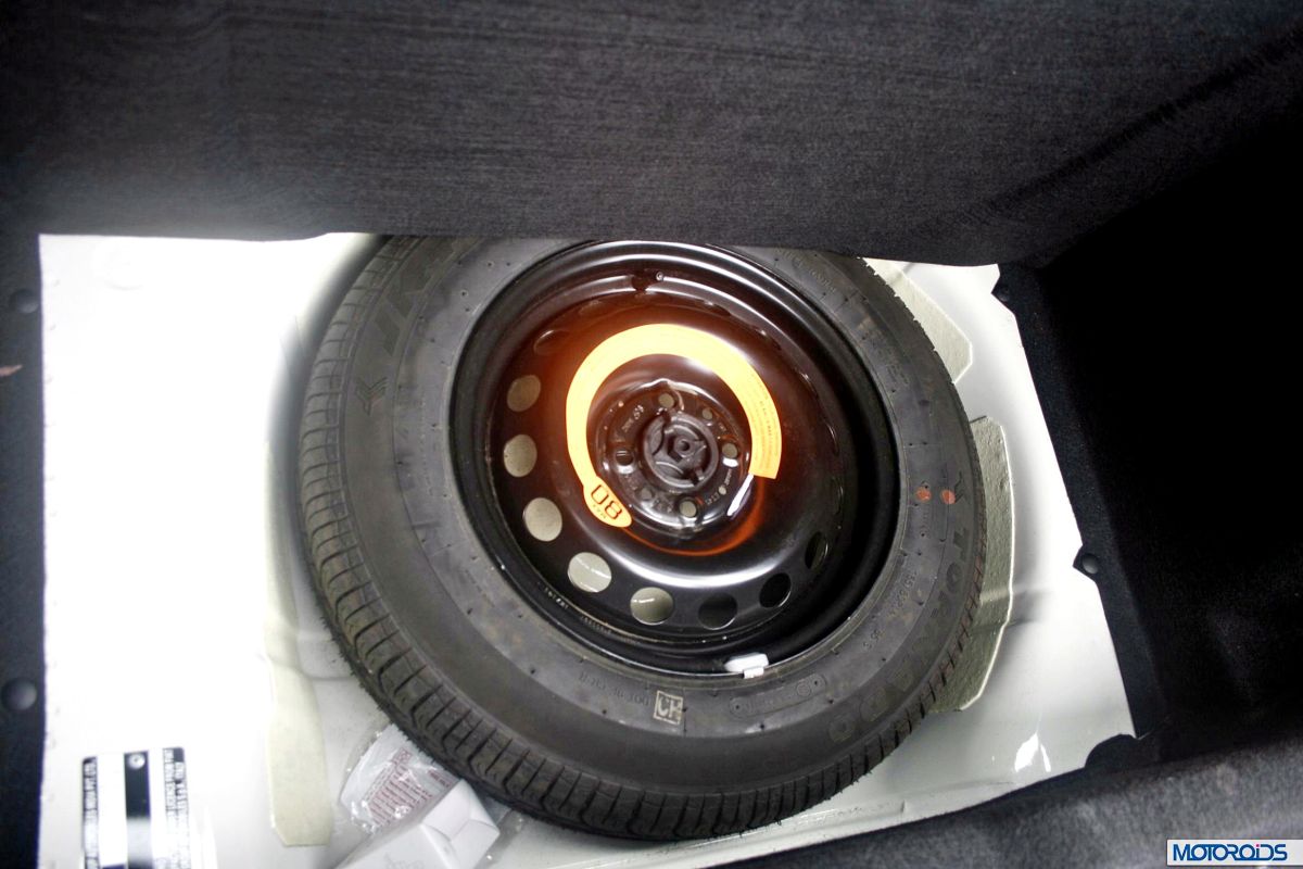 The seats also share the twin tone theme with beige and dark gray fabric seats which complement the interiors. The front seats themselves are very supportive and offer a long range of travel for taller drivers/occupants. The space for rear occupants is just about enough and the seats offer a 60:40 split with adjustable headrests. The rear central AC vent does a good job of keeping the comfort level high. The boot space remains unchanged at 280 litres with a pressed steel disc wheel underneath as the spare wheel for emergencies.