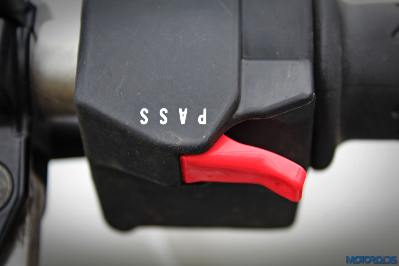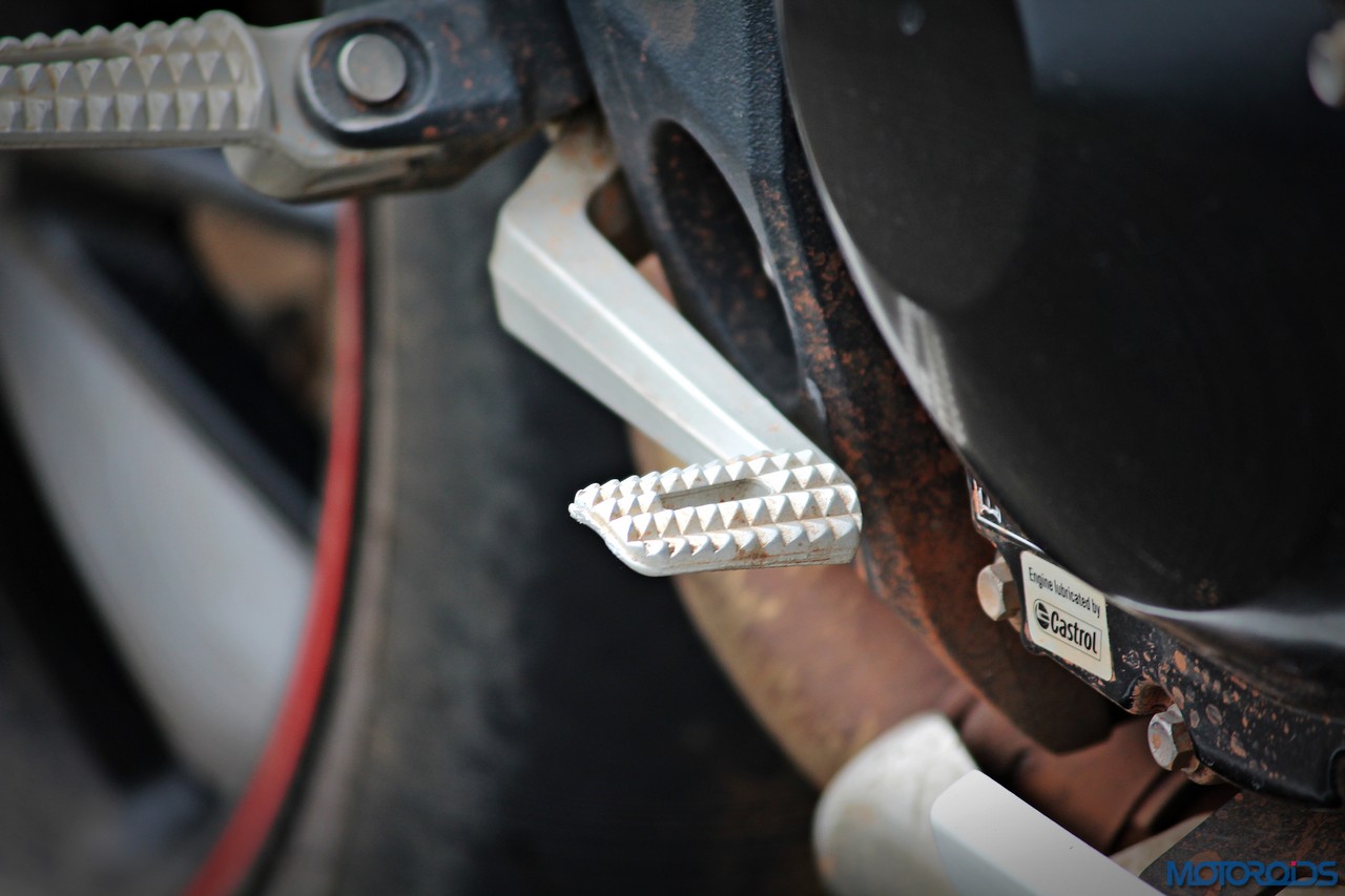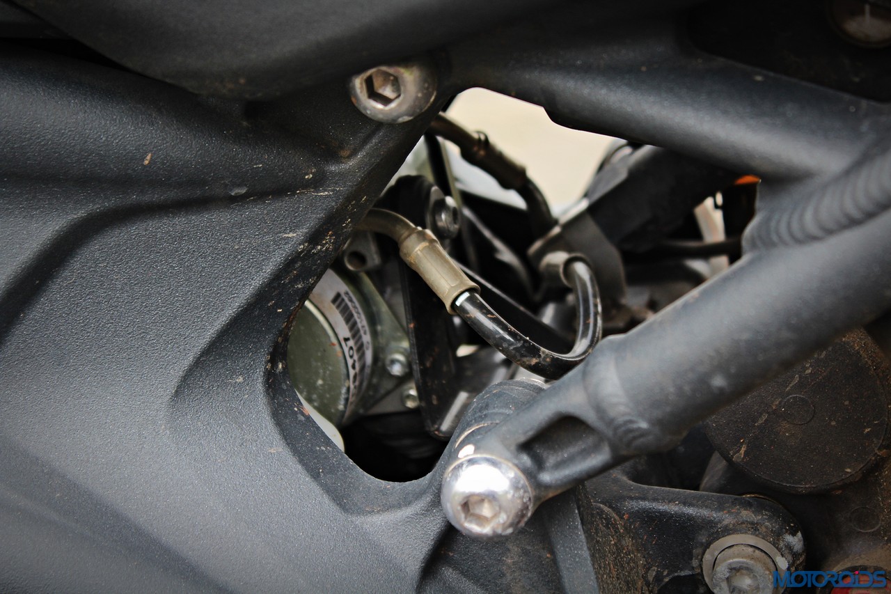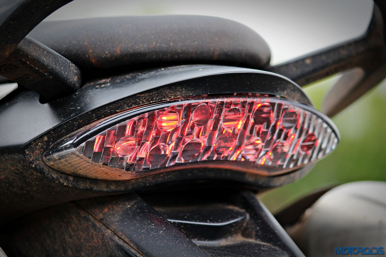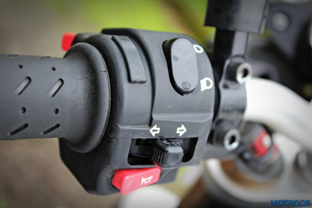 As for the appearance, it isn’t a diva. But once you get used to the bug-eyed front end, the white capped excuse for a wind deflector and the itsy bitsy pieces of bodywork, it looks just fine. It’s got a purposeful stance, and I quite like the twin, upswept exhausts.