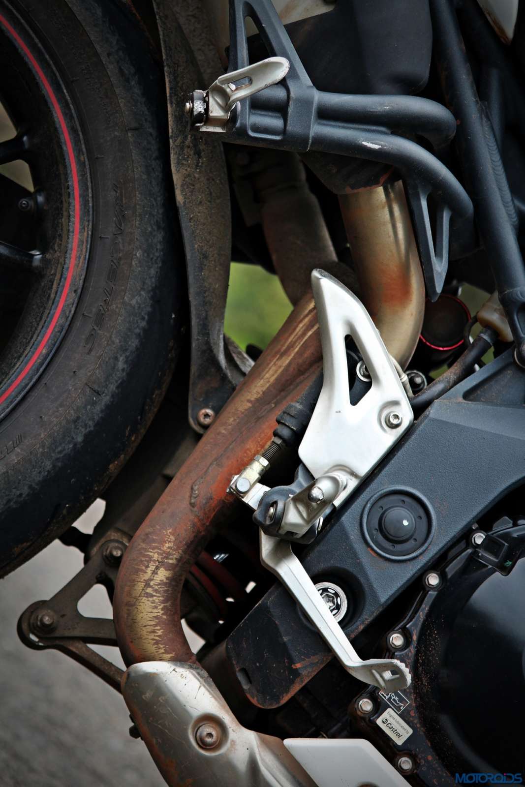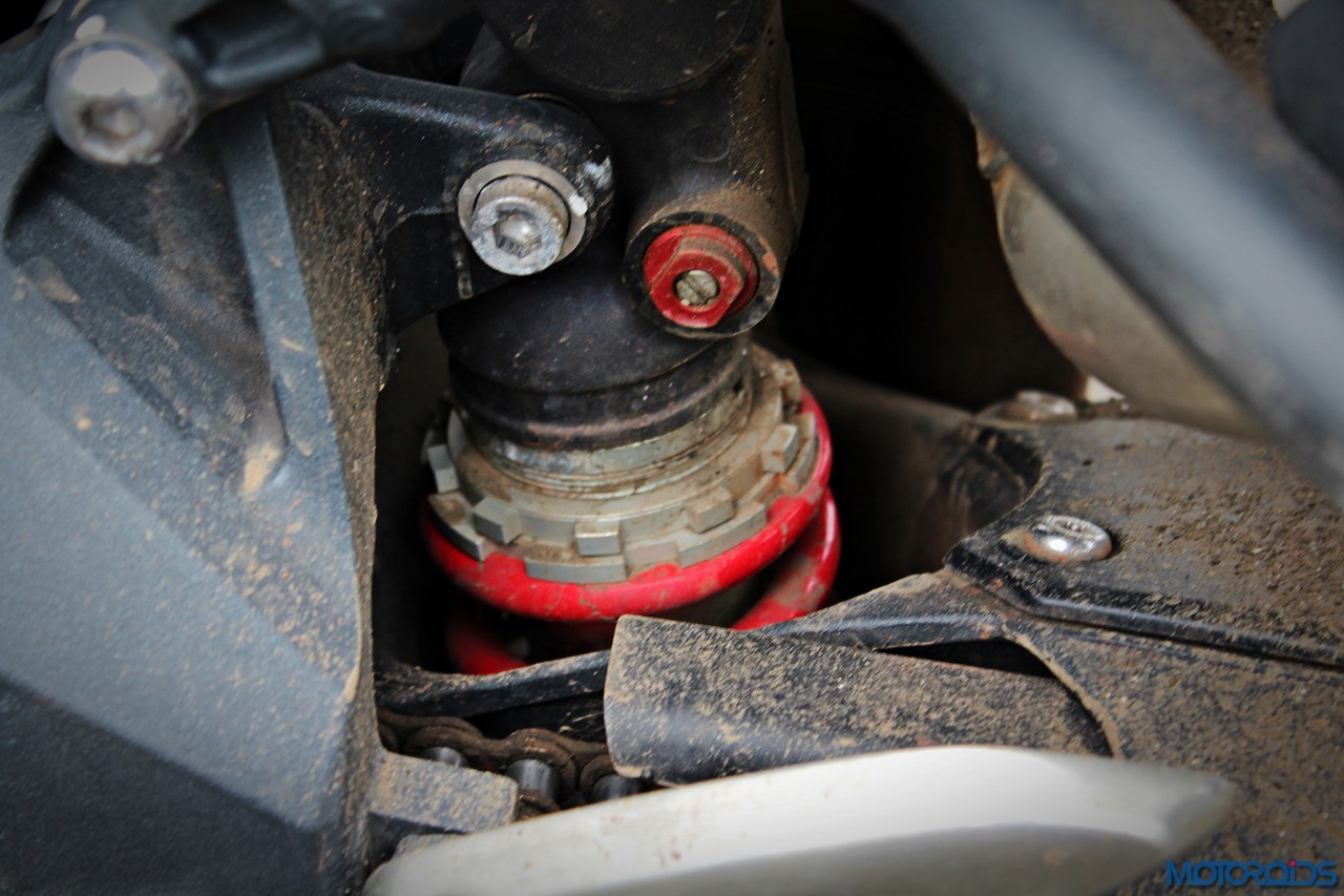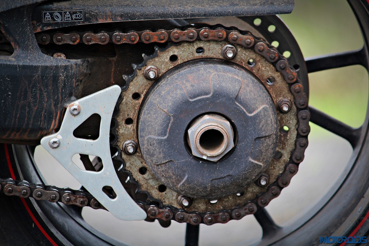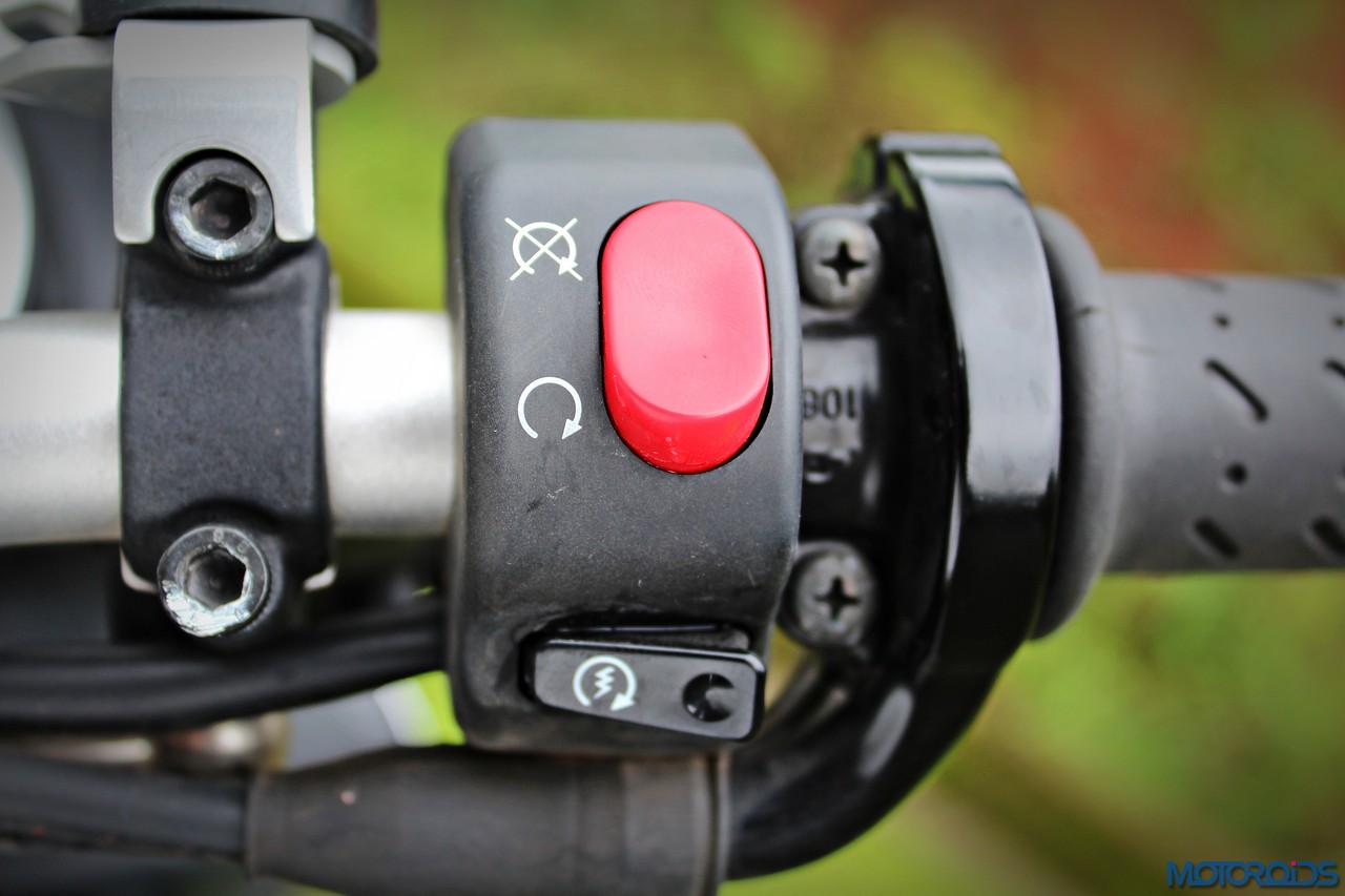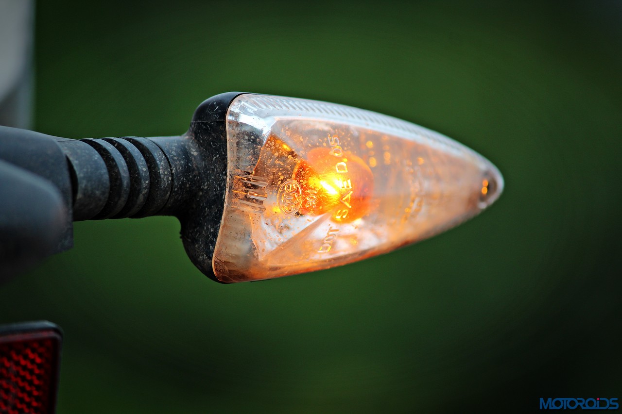 As for the appearance, it isn’t a diva. But once you get used to the bug-eyed front end, the white capped excuse for a wind deflector and the itsy bitsy pieces of bodywork, it looks just fine. It’s got a purposeful stance, and I quite like the twin, upswept exhausts.