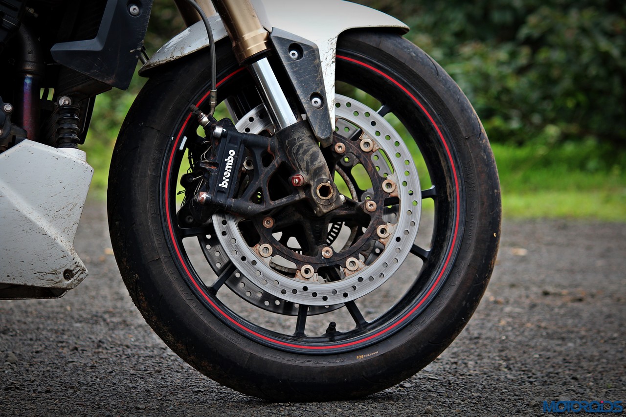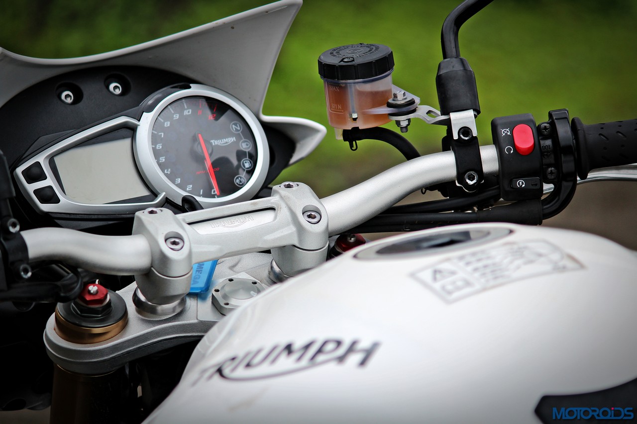 As for the ride, the Speed Triple’s stride is definitely on the firmer side, but it still has that suppleness that makes it go over bumps and irregularities on the road with some amount of grace. It’s no sports tourer soft though, and you’ll still need to stand on the foot pegs over the rough stuff at decent speeds as the Showa shocks don’t like to be disturbed much.