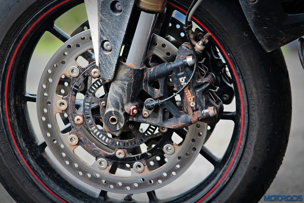 BRAKES FRONT Twin 320mm floating discs, Brembo 4piston 4pad radial calipers (ABS model available)