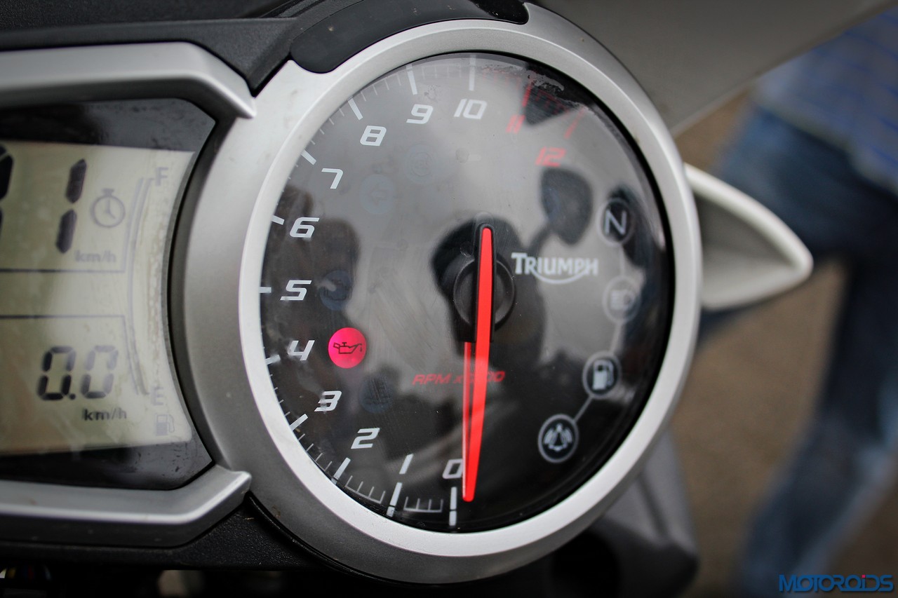 You see, in the lower and medium engine speeds (from 1,000-5,000 rpm), the Speed Triple delivers power like the taste of the creamy froth that floats over freshly brewed beer piping up in your mug. You lick your lips, as the first hints of a merrier night-to-come start to show up in your brain. In the urban-o-sphere, with the engine ticking below 6,000 revolutions, the Speed Triple will never alarm you with its power. Its lay is very predictable and builds with a sort of laze that’s almost perfect. There’s none of the visceral, arm-off-handlebars force with heavy handed throttle inputs, just a linear surge that makes it quite the beast that listens to you, and maybe even reads your mind.