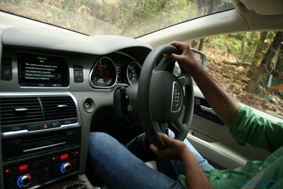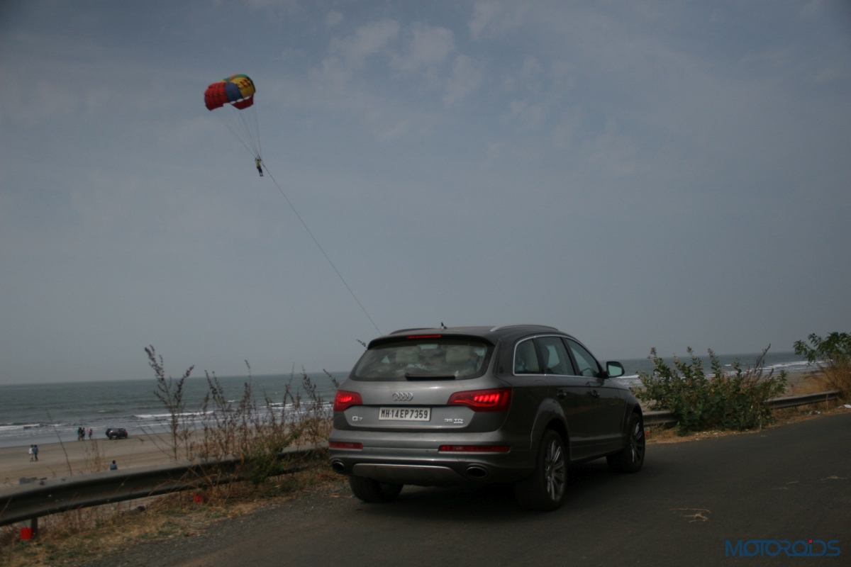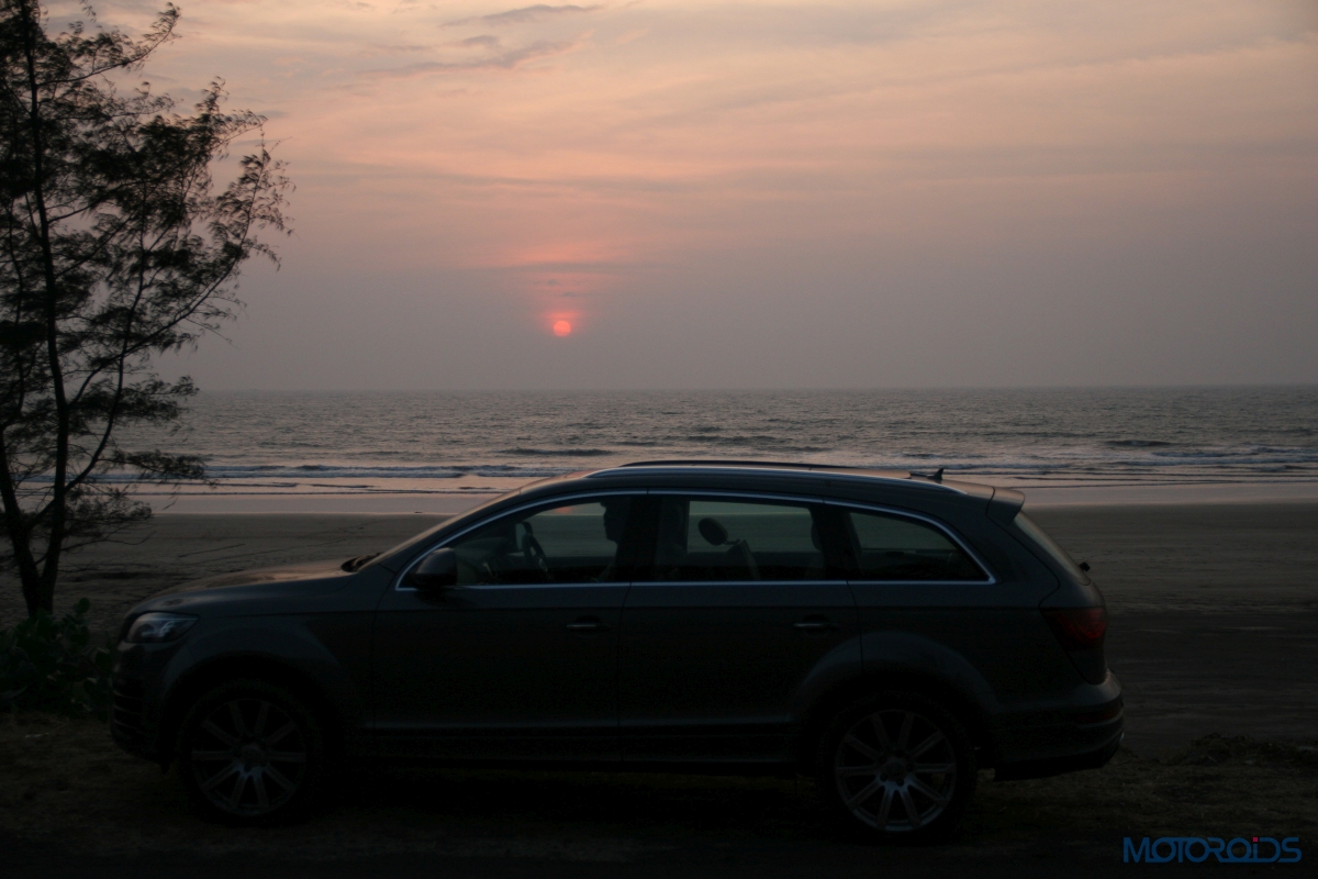 Taking a different route this time, we decided to travel till Khed, take the NH-17 and follow the snake like tarmac back home. As we hit the twisties, with the suspension set in ‘Dynamic’ mode, the Q7 transformed into a lithe sprinter which would dart into corners with surprising agility for a vehicle of its size. Just like one of us on the beach the other night, when some certain sports drink transformed us into becoming a rather rounded and heavy Usain Bolt.