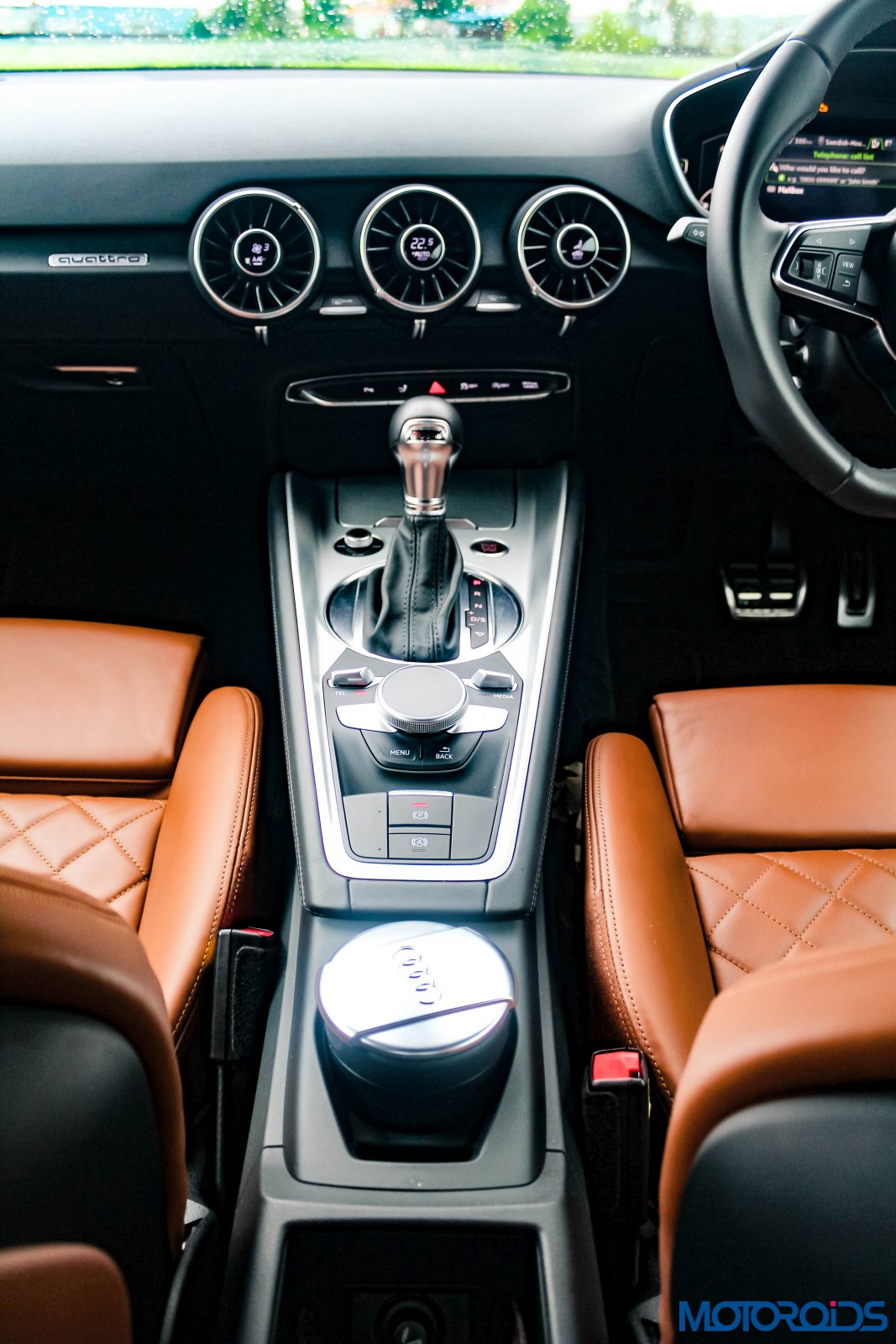 The floating panel between the front seats comprises of MMI controls, gear shifter, and a few crevices to store the indispensable cellphone