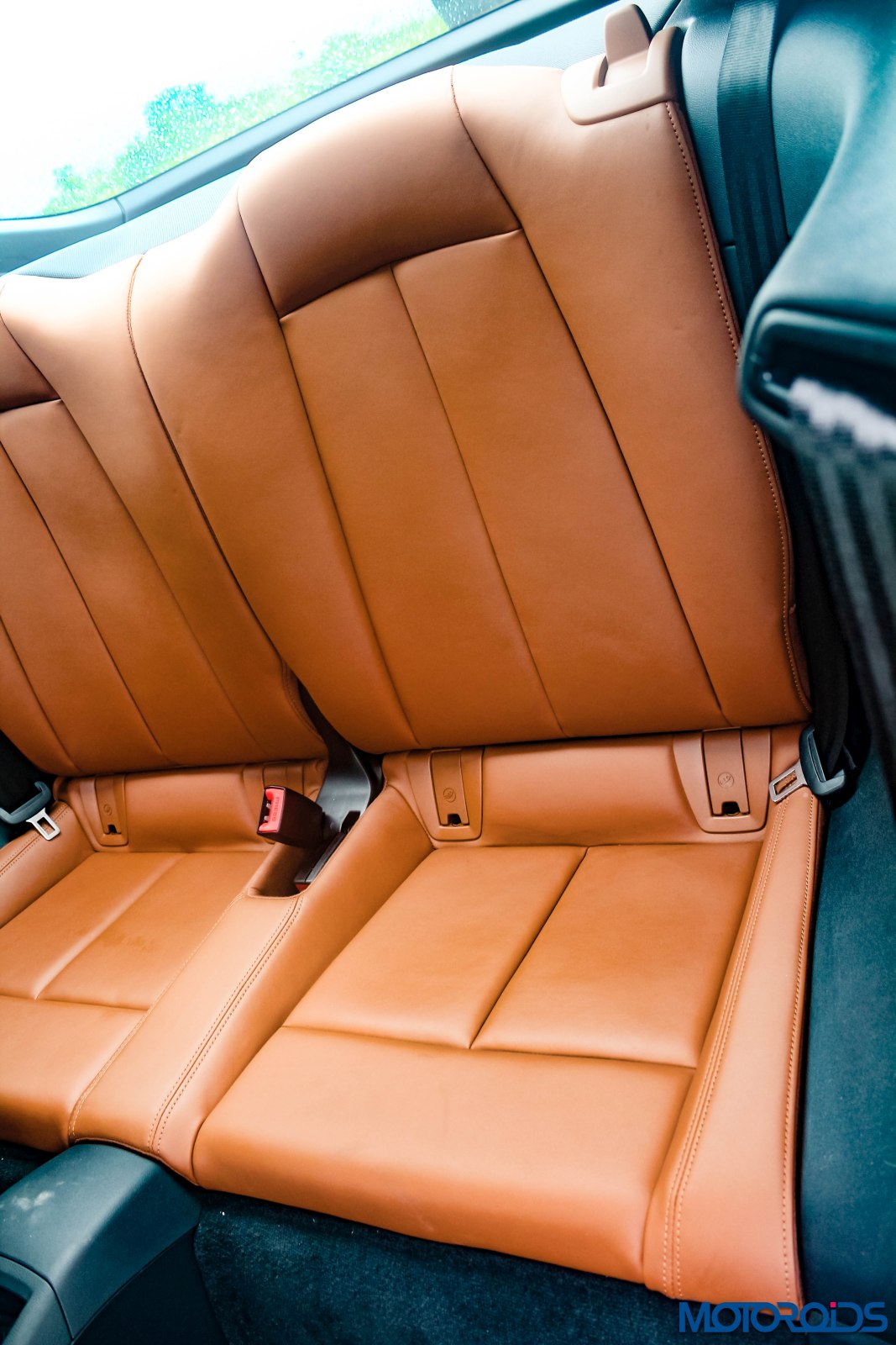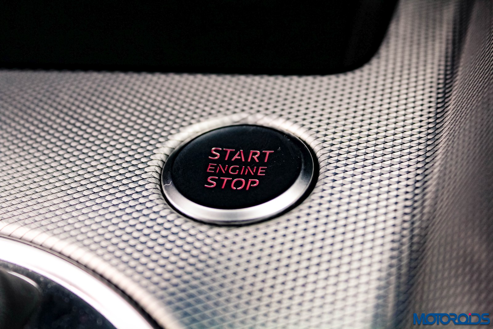The three spoke steering wheel looks classy, compact and sporty with chrome highlights on the spokes and on the hub. The foot-well on the steering wheel’s side features steel pedals with rubber grips adding to the racy appeal. The clean, uncluttered black dashboard features a triad of driver oriented, jet turbine inspired A/C vents which look stunning, while also uniquely featuring the controls for air flow, temperature and recirculation within their hubs. The outer A/C vents by the doors have the control for the optional heated seats, wherever available. A single row of buttons on the centre console allows for control of parking sensors, deployment of rear spoiler, traction control, hazard lights, Auto start / stop and drive select.