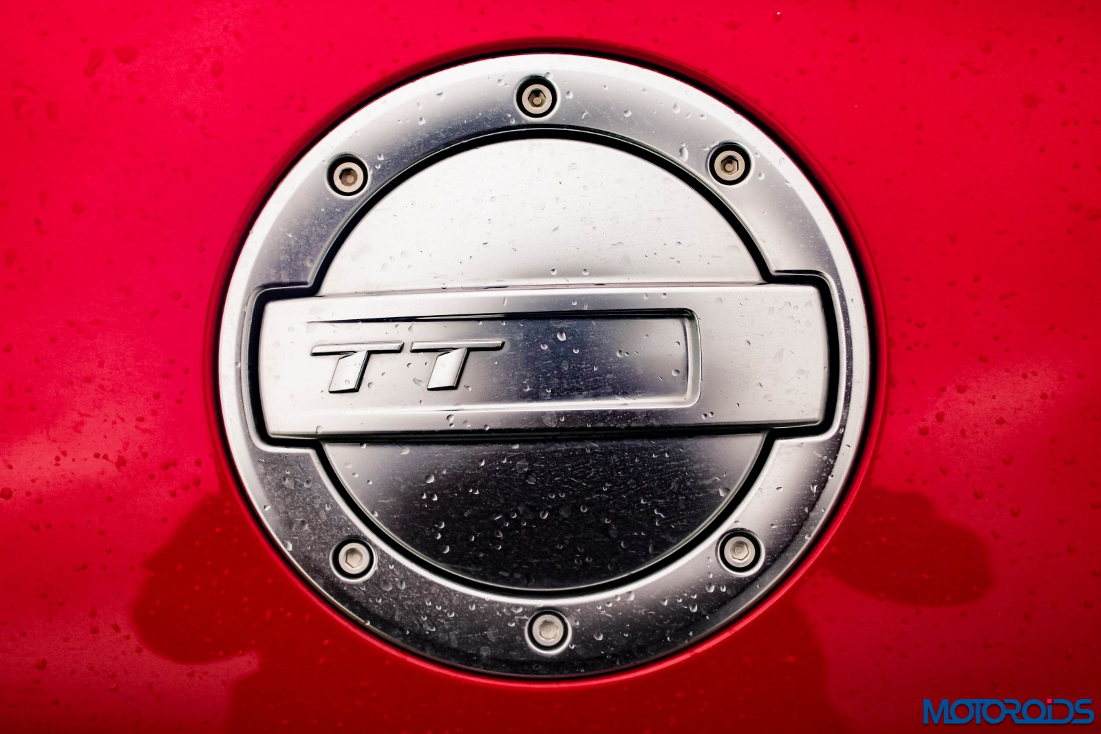 Other notable elements on the sides include the 18 inch 10 spoke wheels, the aircraft style, TT embossed, aluminium finish fuel tank cap and that forcefully dropping coupe roofline. The area under the door sills extends out and gets a bulge towards the rear for that added dash of sportiness.