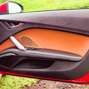 That silver and black textured material on the inner door handles is just one of the many high-quality materials adorning the TT’s impeccably built interior