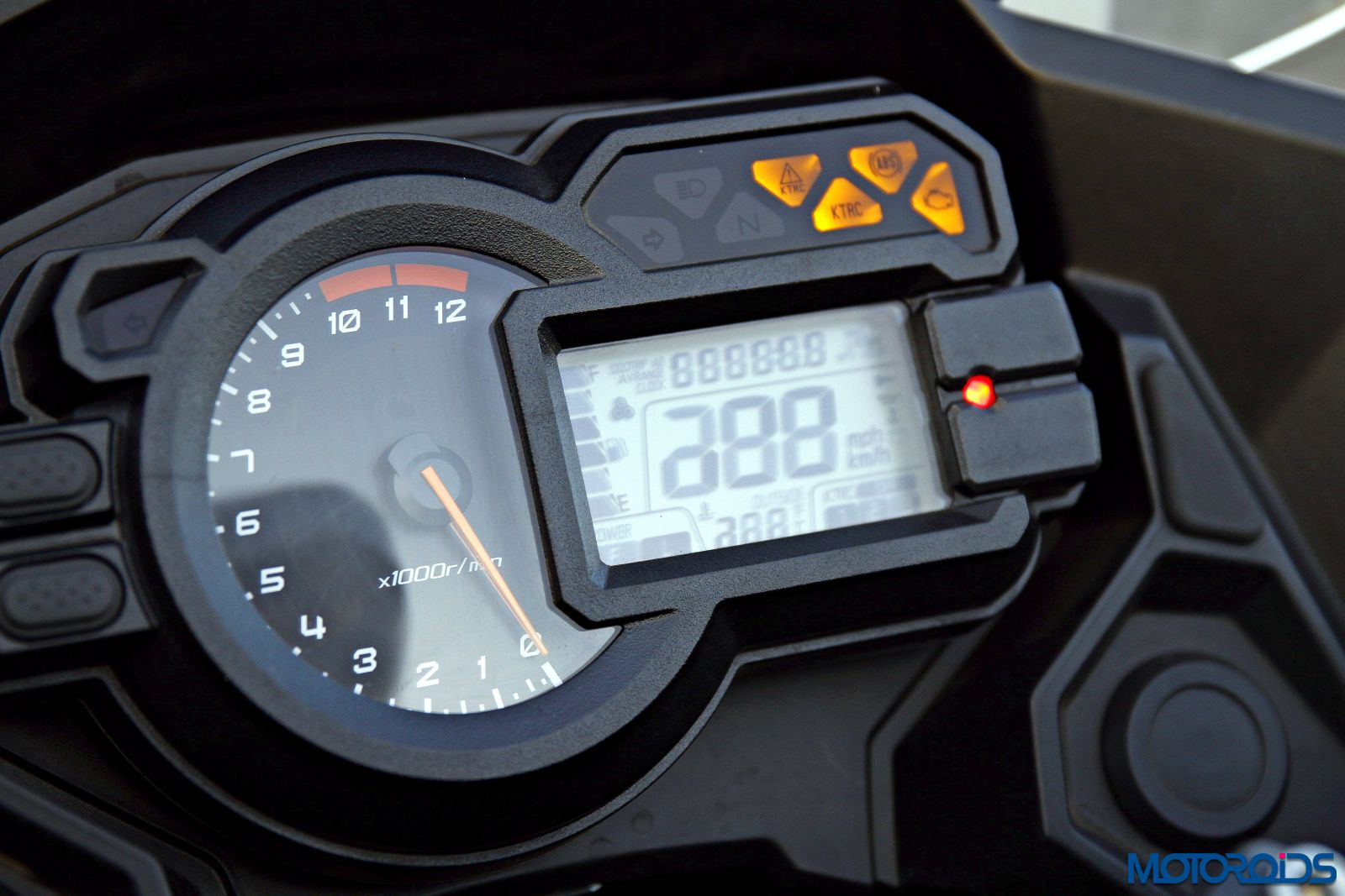 Switchgear finish is top notch with great ergonomics to match the quality. The cluster on the left bar, in addition to the regular turn indicator toggle, low / high beam, horn and hazard lights, also features buttons to select power and traction control modes. Clear lens turn indicators offer good visibility even during daytime.