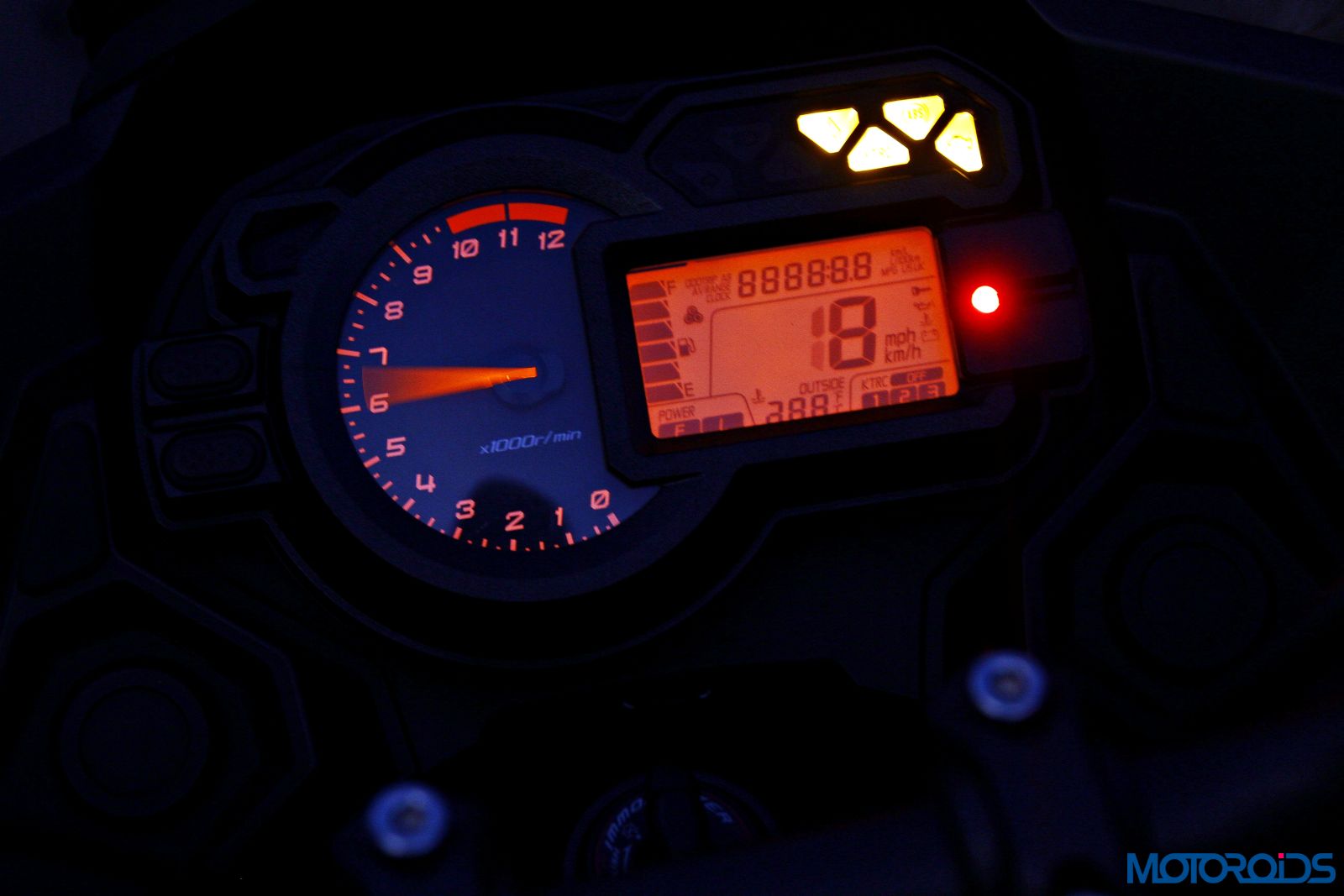 The cockpit, though not very futuristic, looks modern enough and the numbers on the LCD panel can be read clearly even in broad daylight. An analog tacho (thankfully) and various LED backlit indicators keep you constantly informed about the electronics in action.