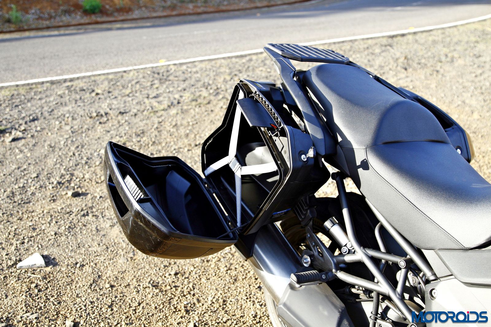 Kawasaki is also providing Standard KQR™ (Kawasaki Quick Release) 28-liter Hard Saddlebags (optional at extra cost) and a luggage rack for a top case to substantiate the bike’s touring credentials. The robust looking centre stand might scare you off at first, but it’s easy to operate even for those with a slender built. Overall the Versys 1000 simply evokes the globetrotting emotion instantly makes one ruminate a date with the horizon.