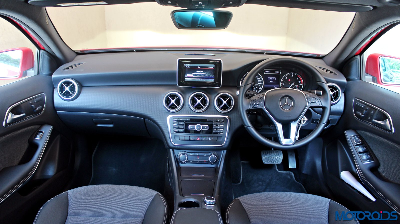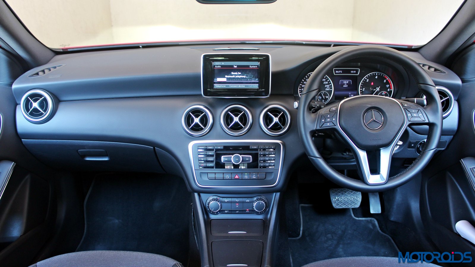 The car now gets a panoramic sunroof as standard. The A200 CDI gets a few minor changes on the inside as well, most of them being carryovers from the Edition1 version, including the leather and fabric upholstery. The instrument cluster now gets black dials against the white dials on the A180. The dimpled grip area on the steering wheel now gets plain soft leather. Other features include front parking sensors along with a rear view camera with guide lines.
