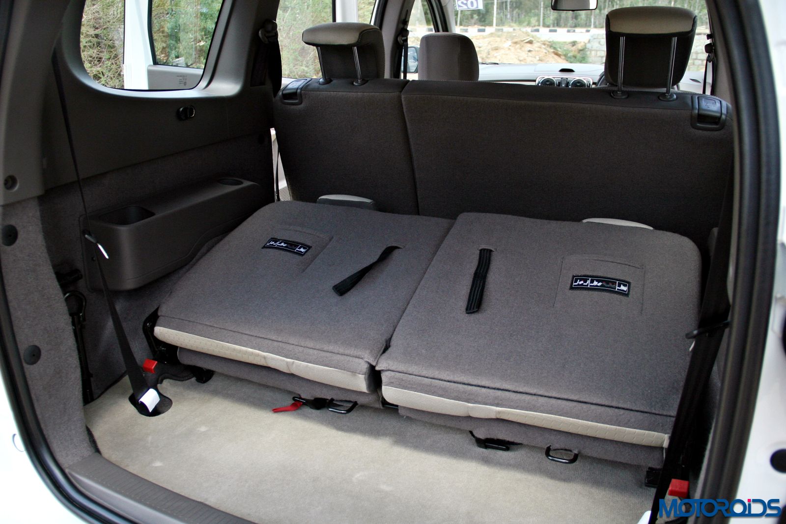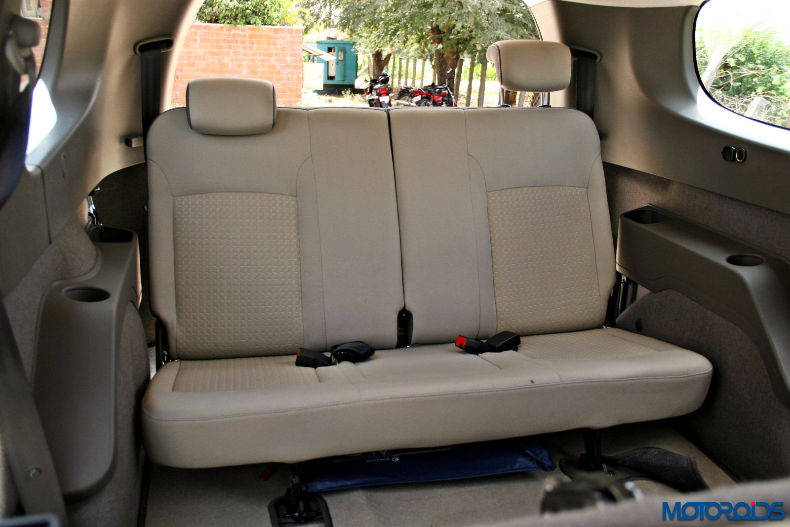 Second row room isn’t palatial, but more than adequate in all possible dimensions. Also, the FWD architecture ensures a flat floor, leaving room to move your feet around. But jumping into the Innova just after spending time inside the Lodgy’s cabin made us feel that Toyota might just be a smidgen roomier. The middle row bench also offers a built-in, foldable arm rest with a couple of integrated cup-holders.