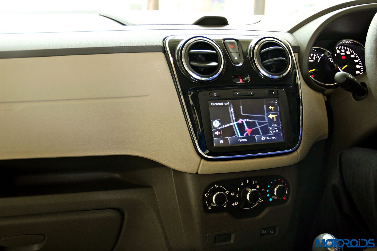 Step inside, and the Lodgy is all about the cavernous space. The driving position is high set and commanding, giving a clear view of the outdoors, helped by the large windows all around. The dashboard and the rest of the interior is sprinkled with bits from the Duster, and evokes a sense of familiarity. The chrome trimmed, piano black insert on the center console makes it look a bit up market, but the chromed door pulls are a bit of letdown in terms of feel, finish and quality.