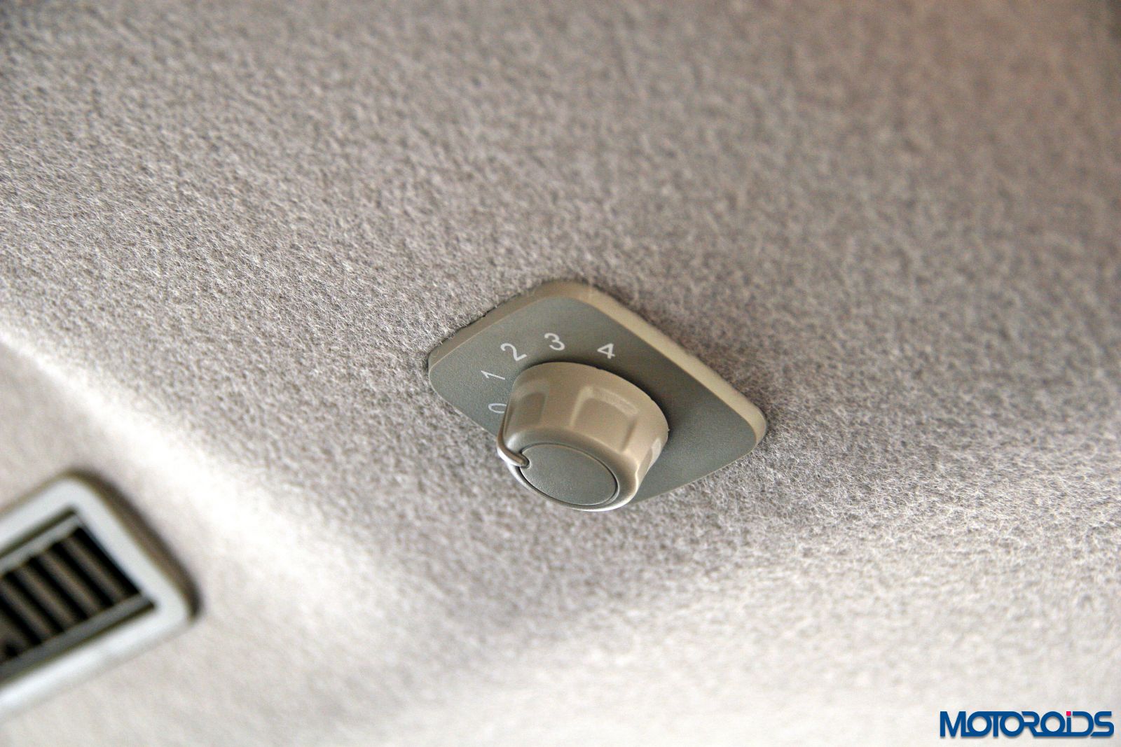 Roof mounted fan speed control knob for the second row occupants.