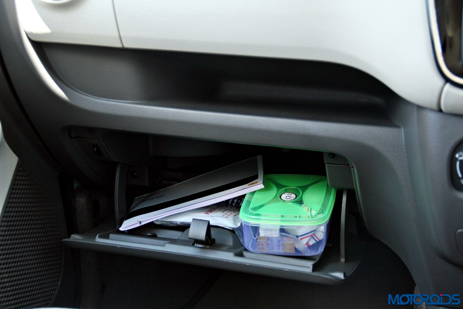 Glove-box is accommodating enough..