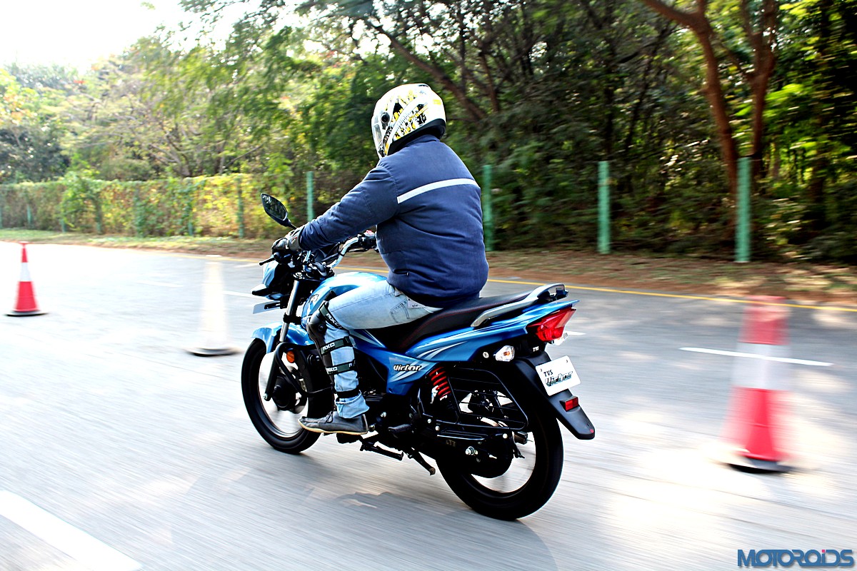 It’s impossible to judge a commuter motorcycle’s real-world abilities by riding it around a test track, most of which happens to be straight stretches. But still, I’d say that the Victor felt noticeably quicker than the Star City+ through the gears. Although there were a bunch of vibes creeping in at higher engine speeds, TVS put it as a “brand new bike” issue. However, she felt quite refined at sane speeds that the married man will be commuting at. All those workings applied to the engine seemed to deliver just fine, and the Victor will happily cruise at speeds of 70-75kmph all day long without stressing the engine. Straight line stability is great, and there’s a likeable sprint in its gait that denotes that the new Victor offers extra servings of everything for its segment.